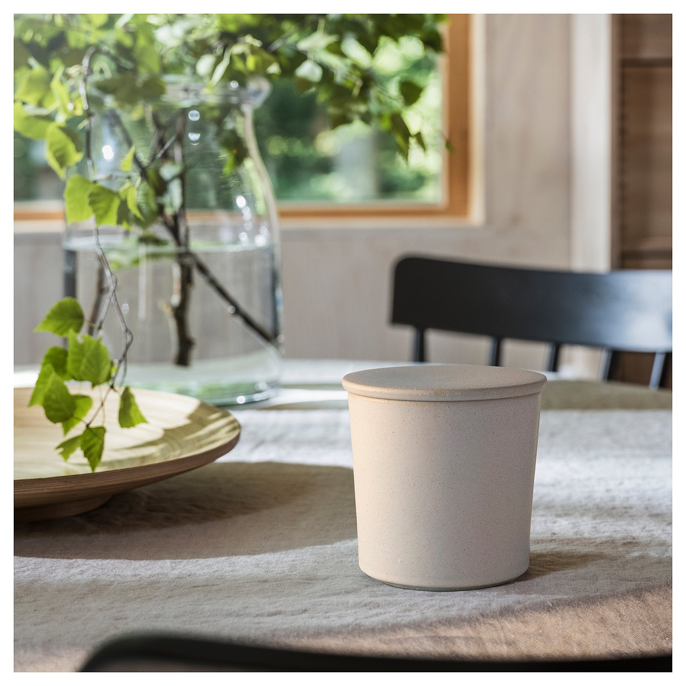 Scented candle in ceramic jar w lid, Scandinavian Woods/white