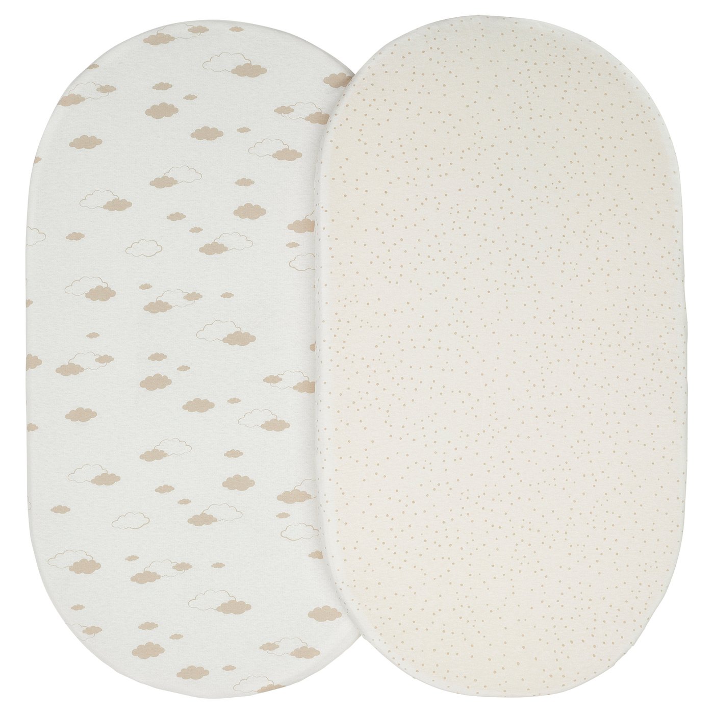 Fitted sheet for bassinet, clouds/dots/off-white