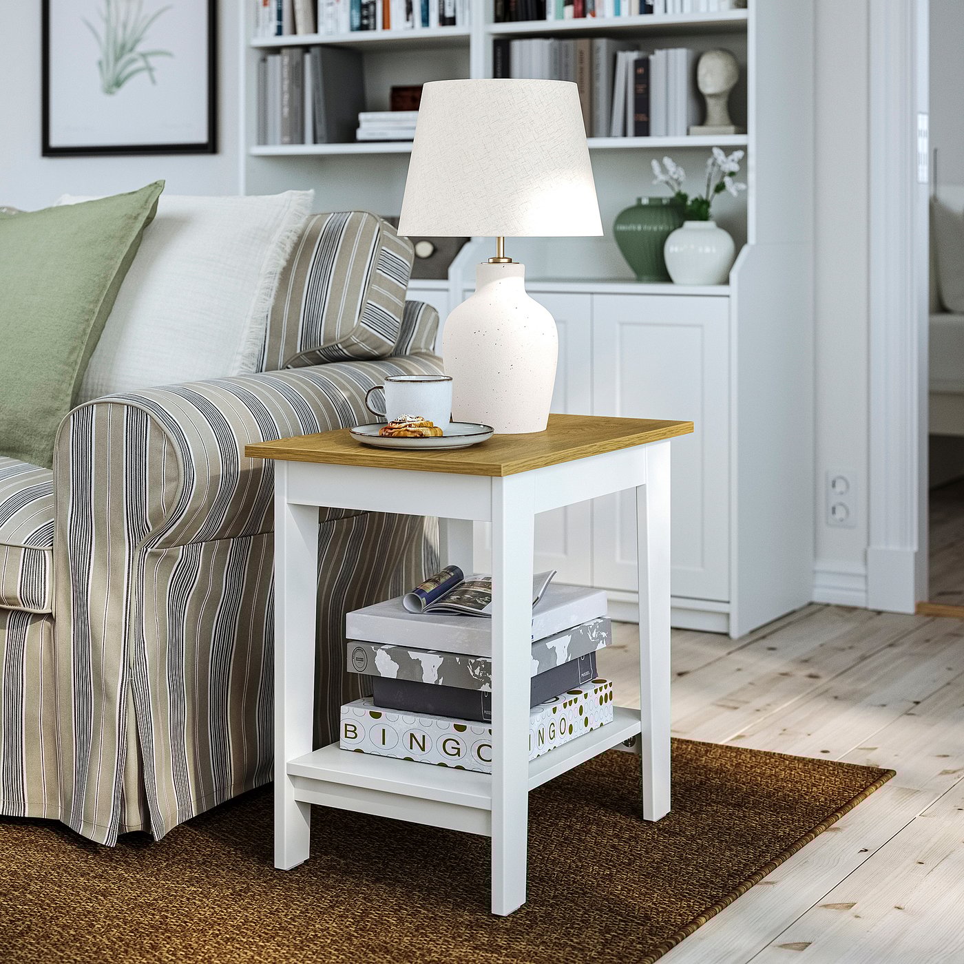 ÄMMARYD side table has room for both lively gatherings with friends and lazy movie nights with family. The traditional design with a wooden tabletop and legs with a distinctive look give a crafted feel.