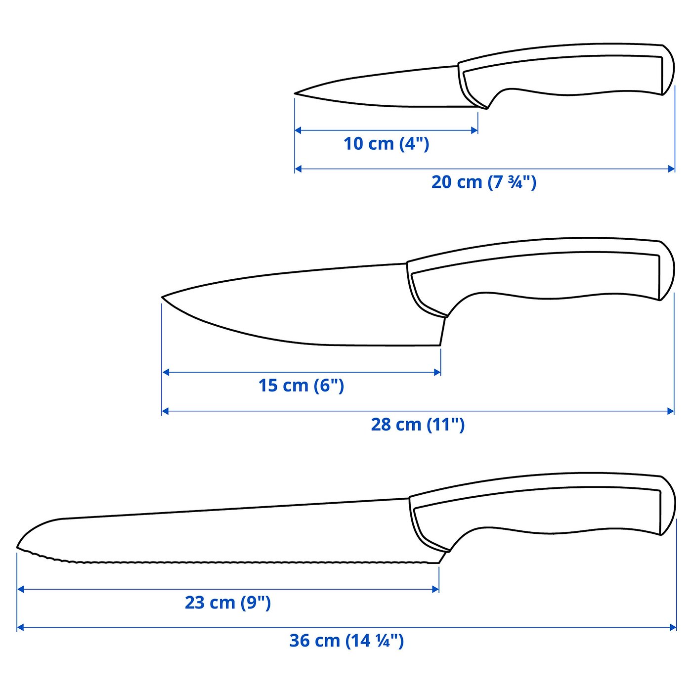 Chop, dice and slice – with these three knives in a convenient set, you can prepare delicious meals for you and your family. They are durable, stable and good for both your kitchen work and wallet.