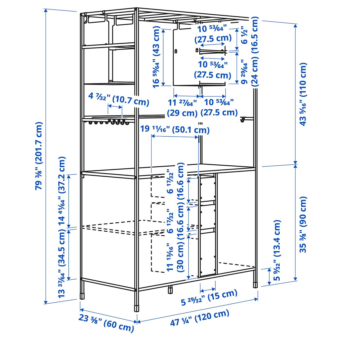 47 1/4x23 5/8x79 3/8 "