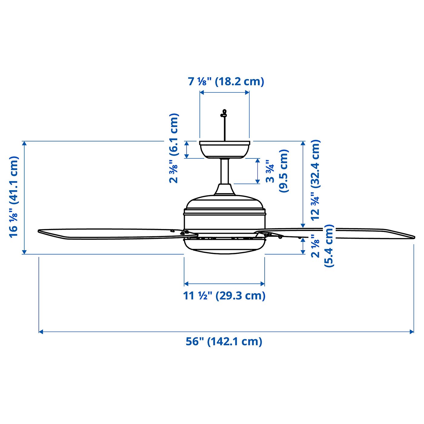 AKTERSKARP ceiling fan with 56-inch blades is ideal for large/extra-large rooms. The 6 speeds, reversible air flow, built-in LED lighting, and remote-control steering make for year-round comfort and convenience.