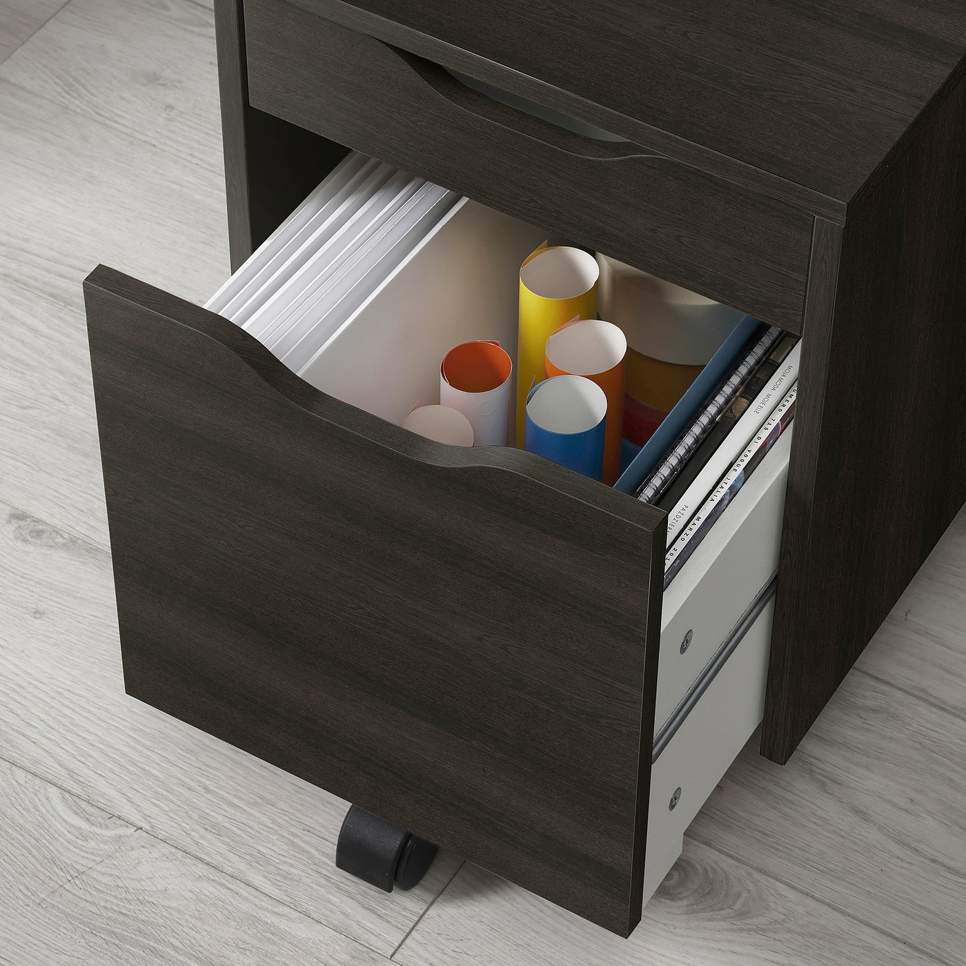 This spacious drawer unit offers smart storage, next to a desk or freestanding. The clean expression is easy to like, mix with other styles or match with other items from the ALEX series.