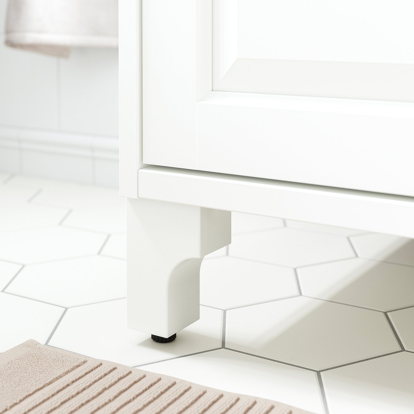 ALMAÅN legs in sturdy solid wood add a design element to your HAVBÄCK, ÄNGSJÖN or TÄNNFORSEN bathroom solution, but are also practical when you want to increase the stability of your cabinets.