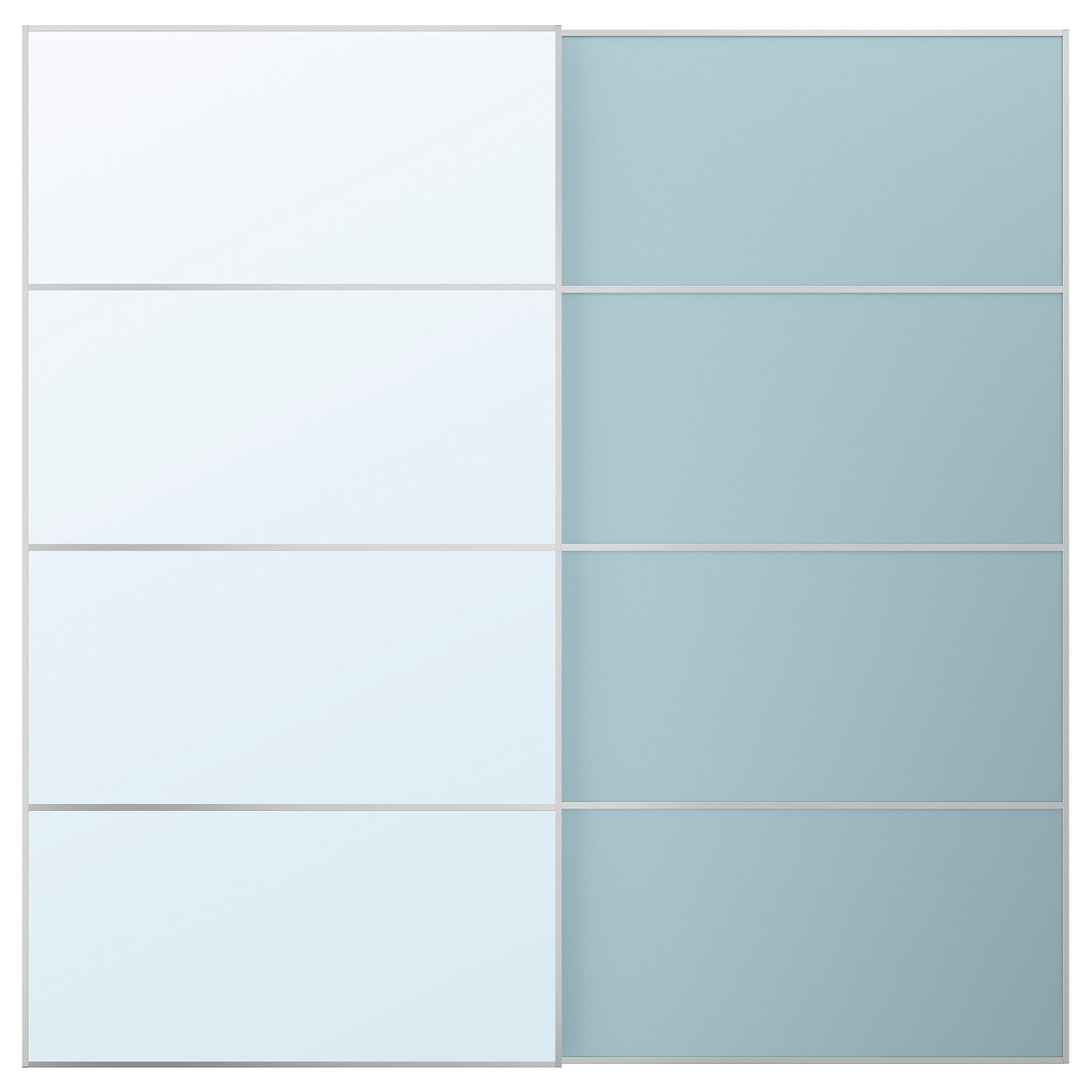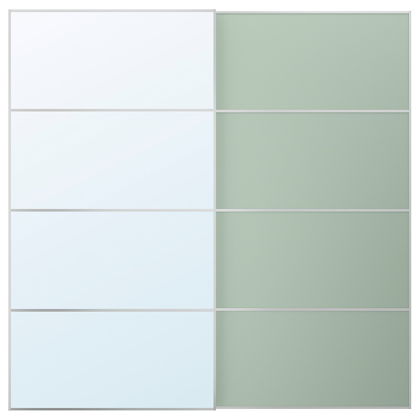 Pair of sliding doors, aluminum mirror glass/double sided oak effect