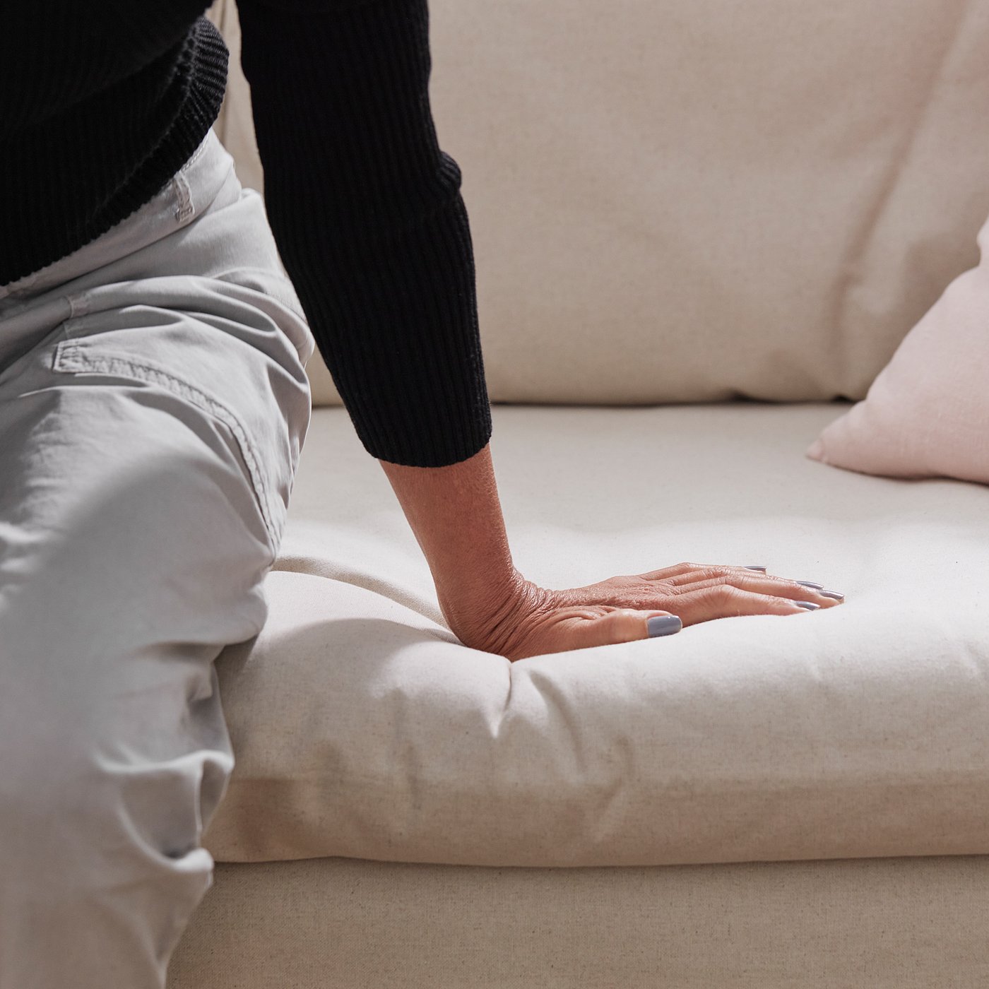 This sofa is easy on the eyes and body. The design is welcoming, the deep seat and the high back and armrests embrace you. It’s also super easy to remove the cover and wash it.