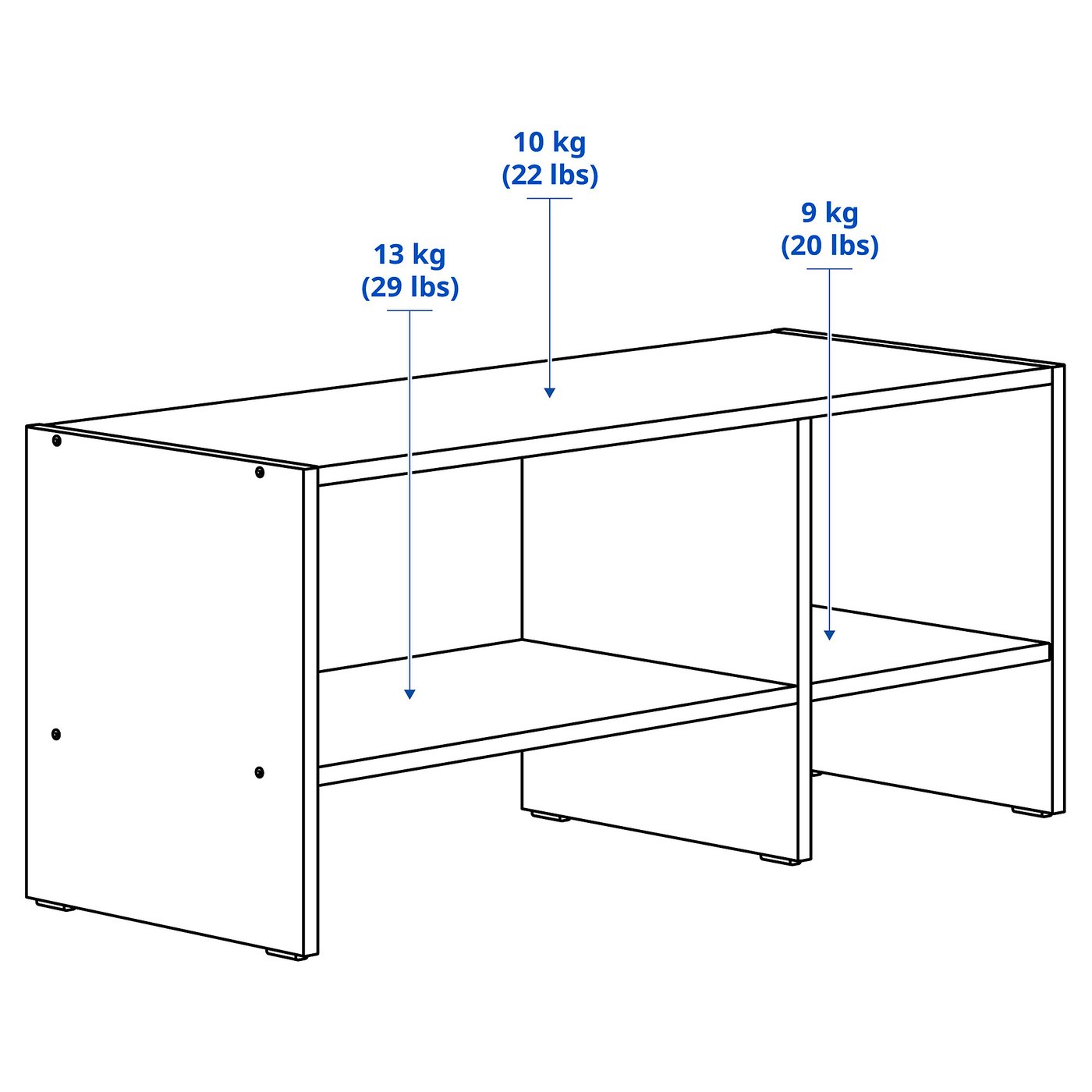 You can fill the shelf with different storage boxes in order to adapt the space to what you want to store and make the look of the TV-bench more personal.