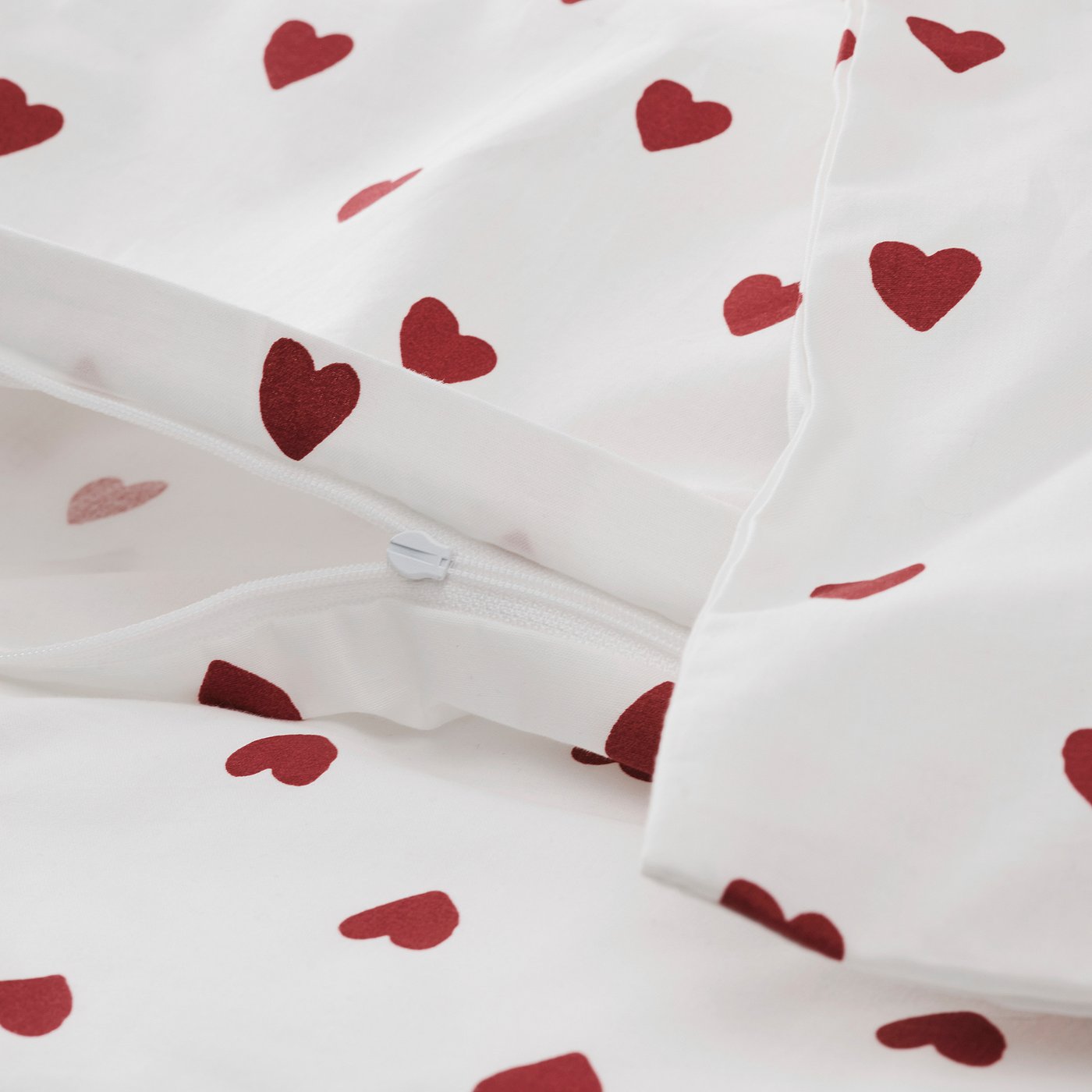 Duvet cover 1 pillowcase f crib, heart pattern/white red