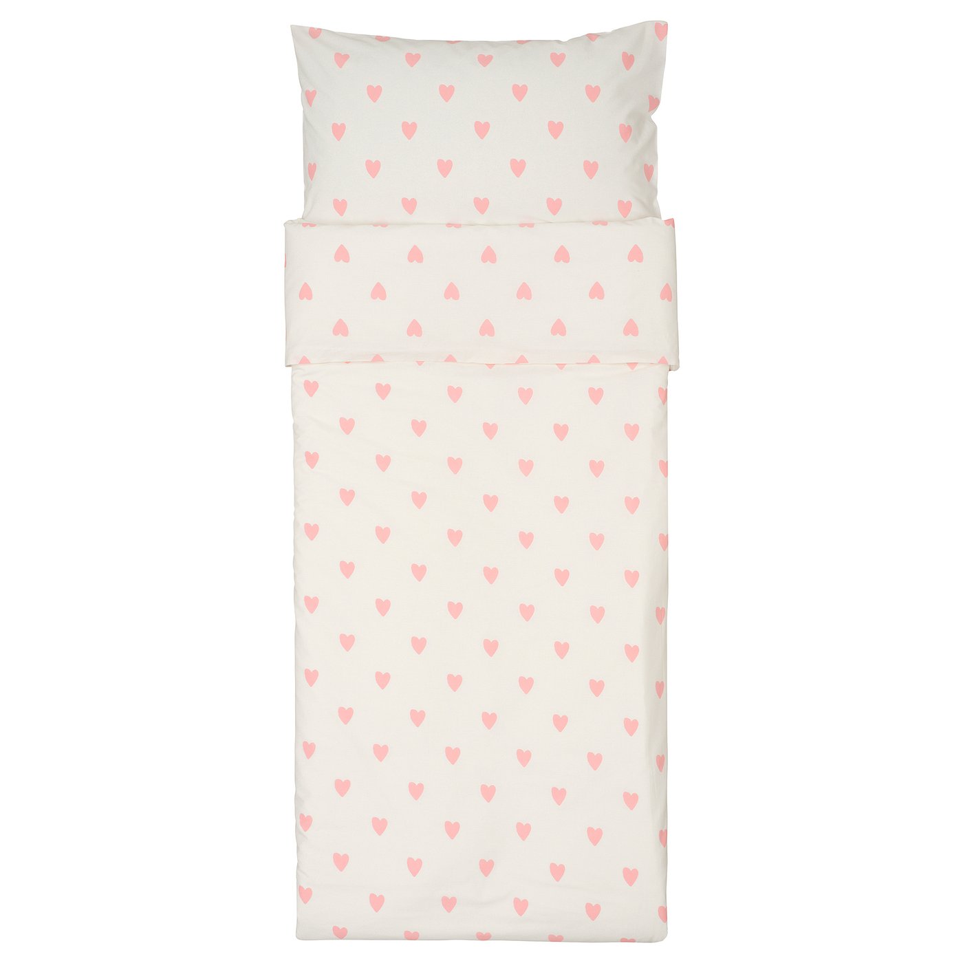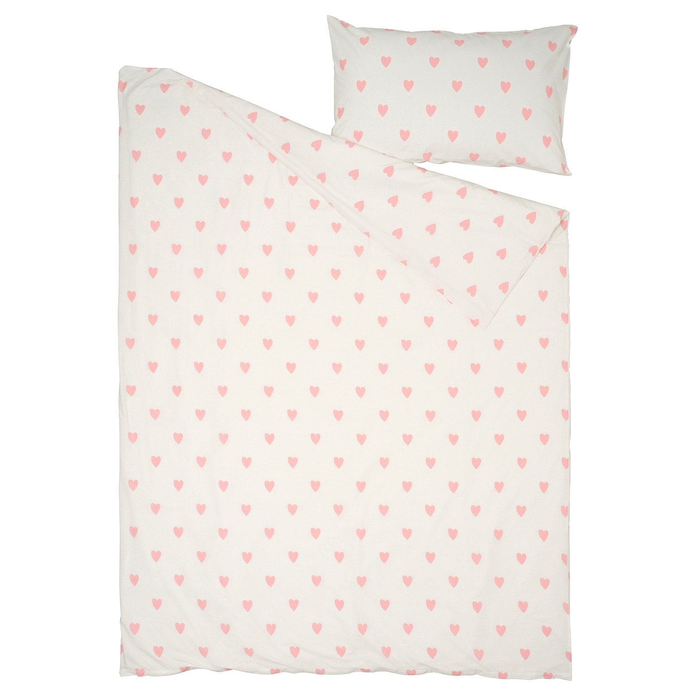 Duvet cover and pillowcase(s), heart pattern white/pink