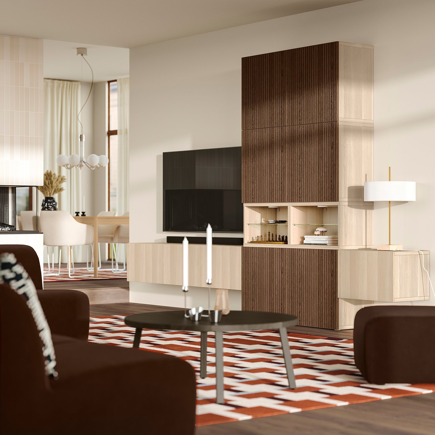 Media storage combination, white stained oak effect Lappviken/Björköviken brown