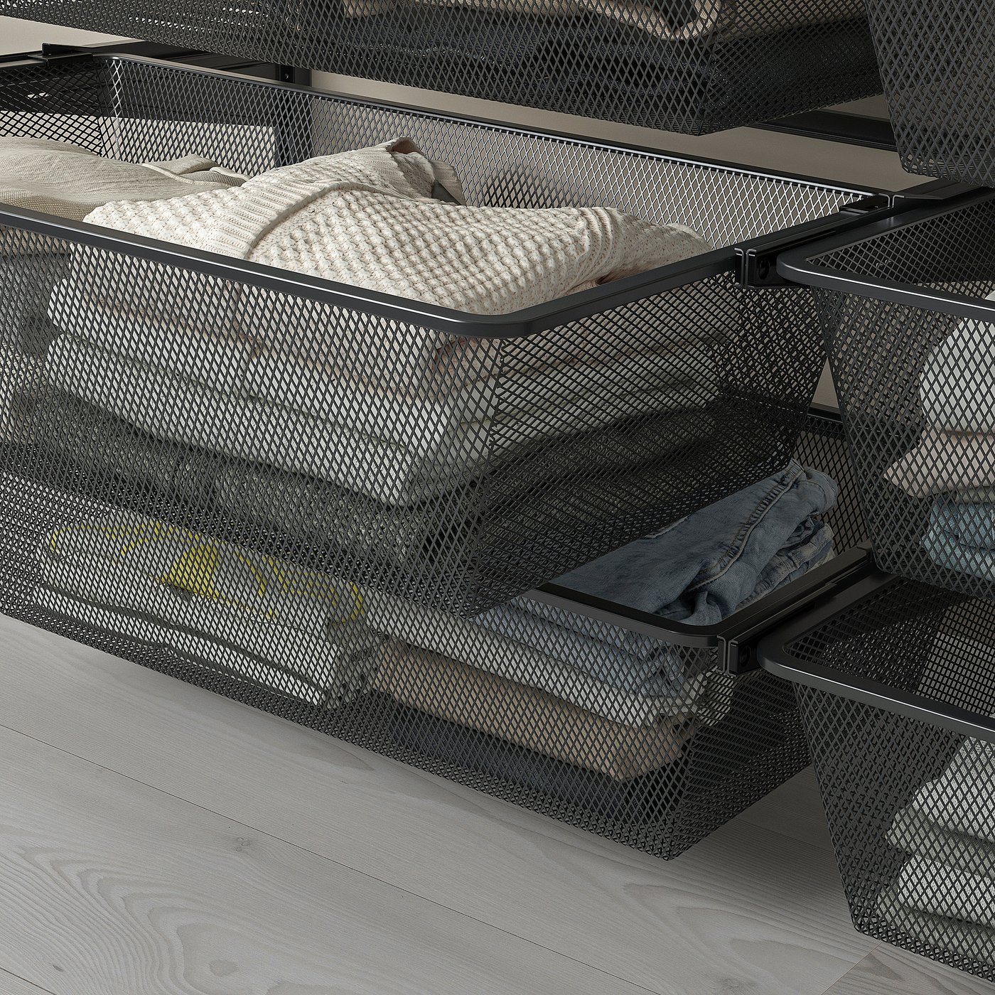 The mesh basket allows air to circulate and is perfect for storing your folded clothes, socks or accessories.