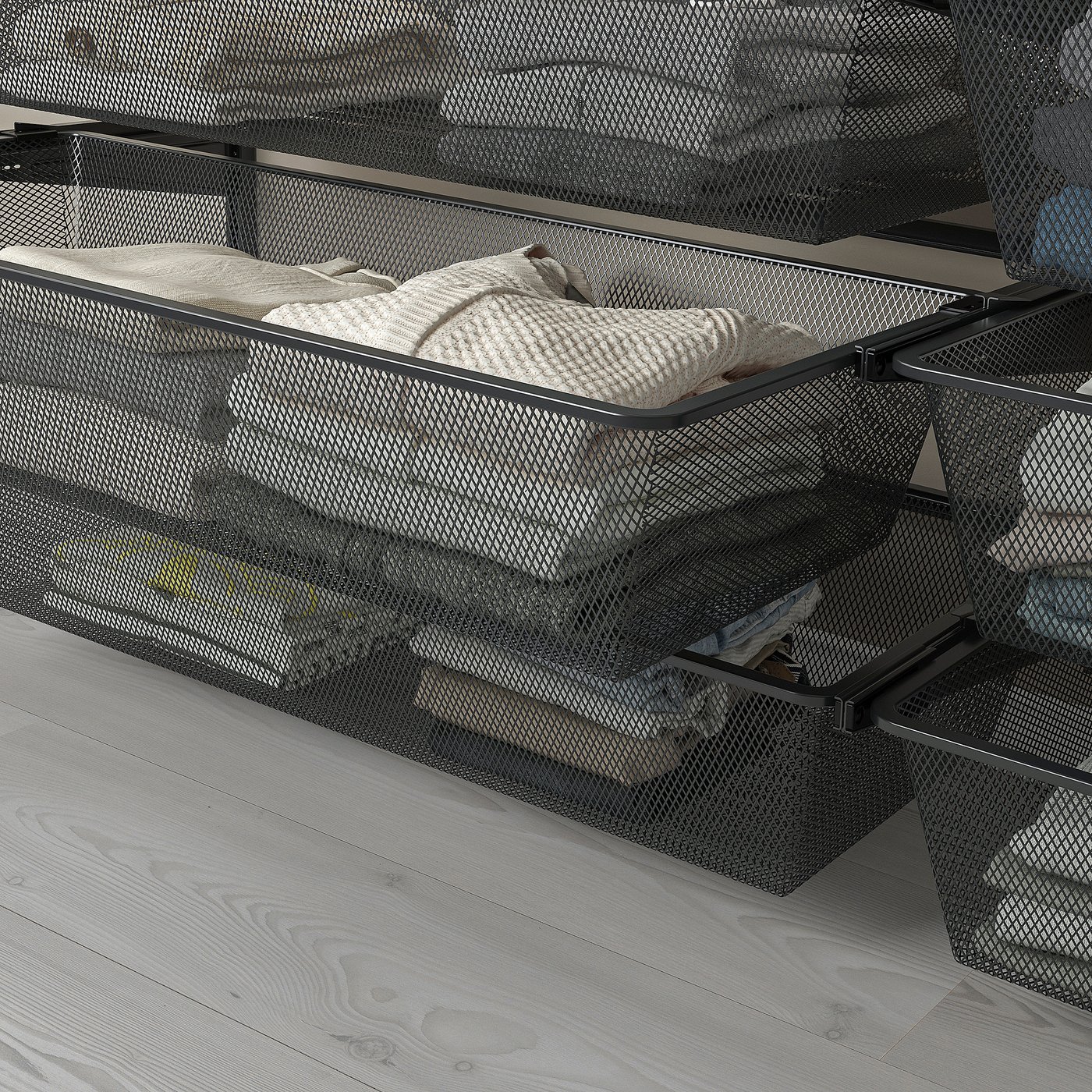 A perfect place for everything from sweaters and socks to shoes and bags. BOAXEL wall-mounted storage system and its mesh basket help you create a solution that suits your things and your needs.
