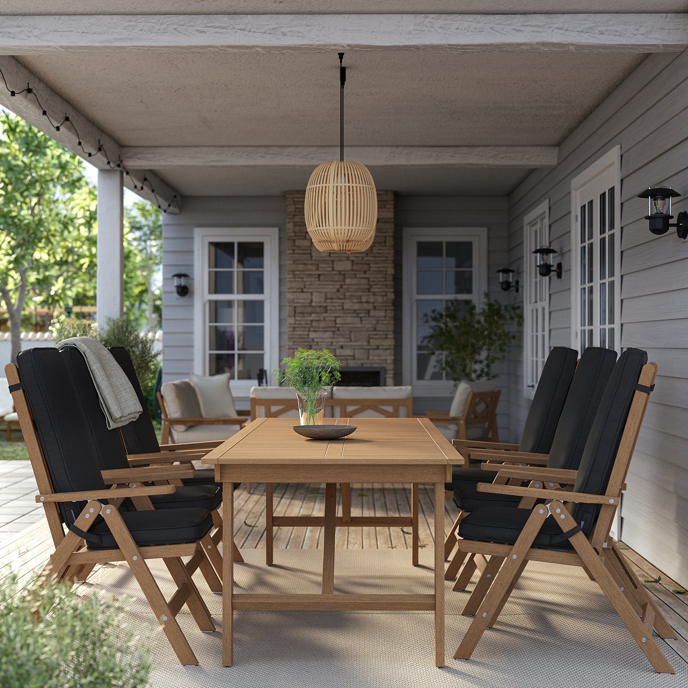 BONDHOLMEN, Table + 6 reclining chairs, outdoor