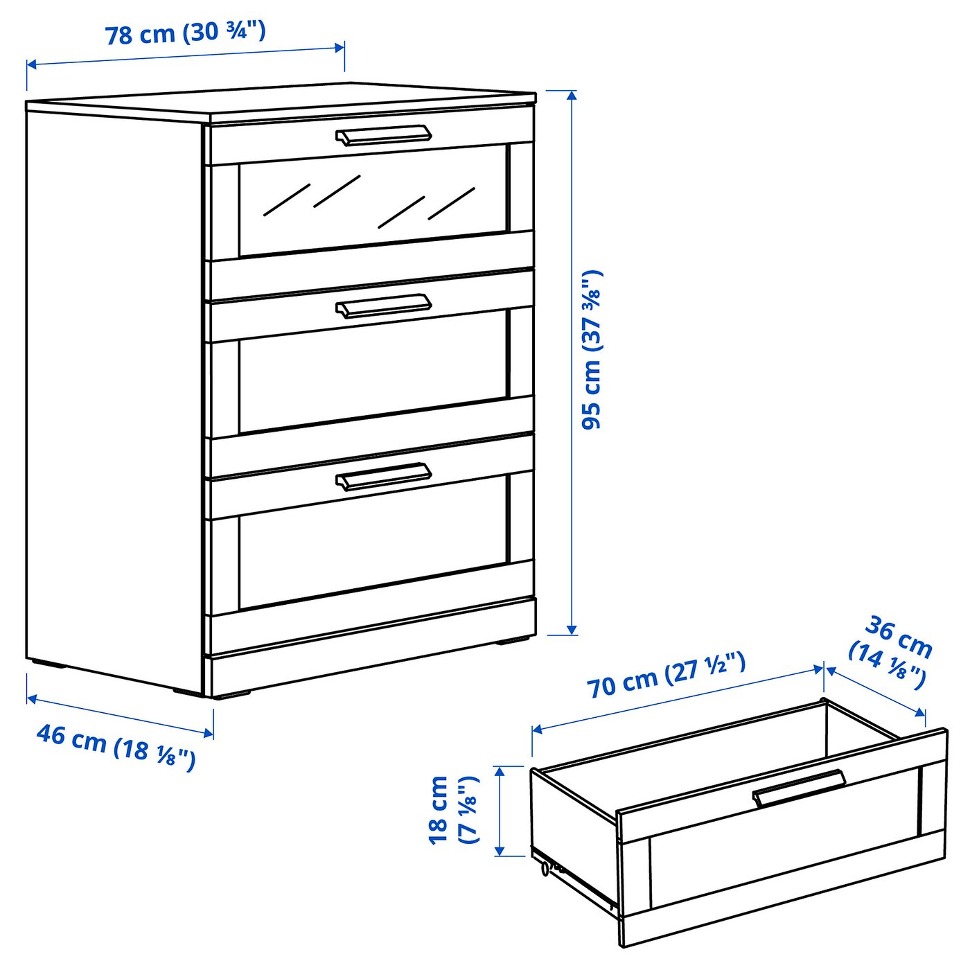 The frosted glass top drawer creates a distinct look – place the chest of drawers as a solitaire or emphasize the look by placing two or more next to each other. Psst! Please attach to the wall.