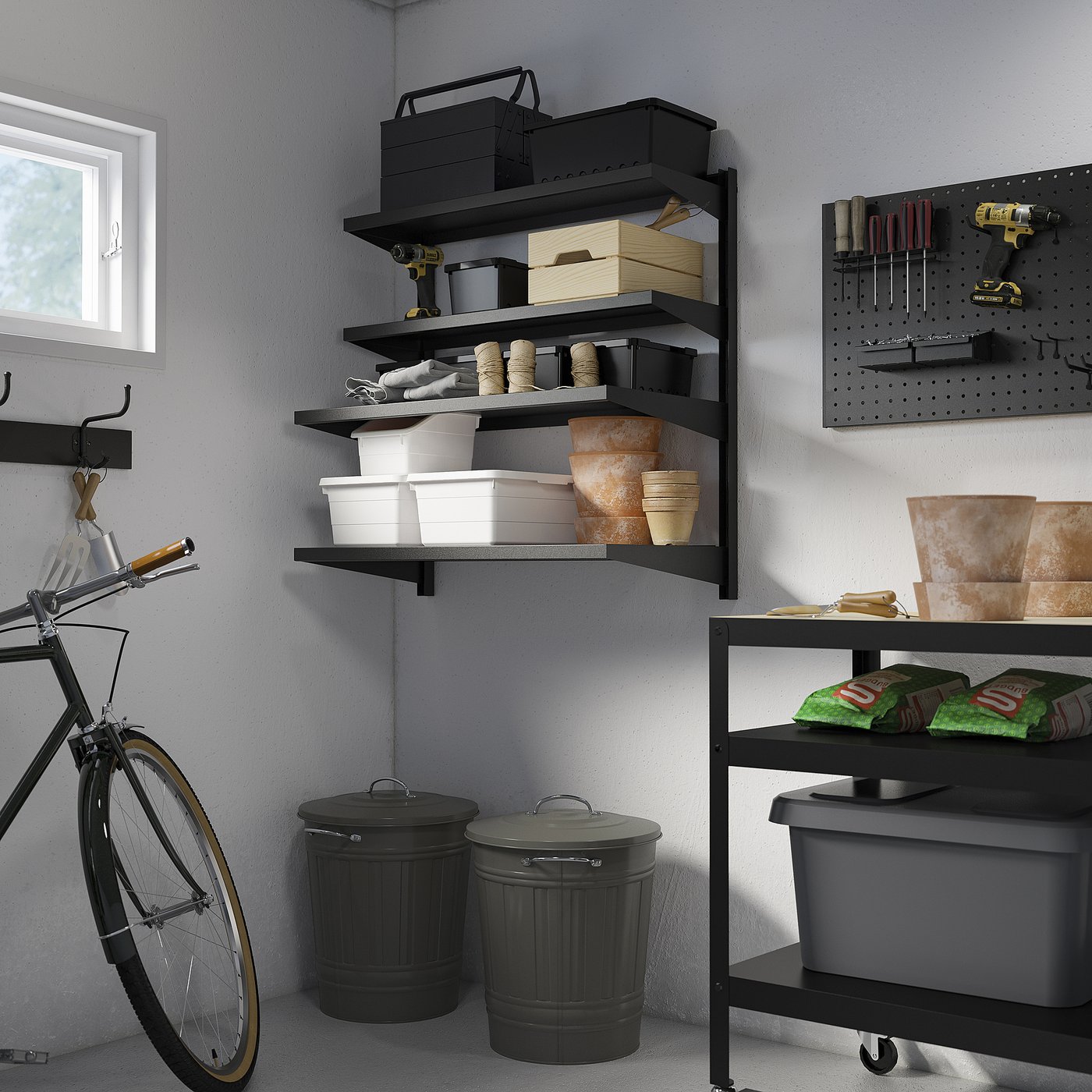 Practical storage for tight spaces in your garage or storage room. This combination is perfect when you want a complete solution with removable shelves and space for everything from plant pots to tools.