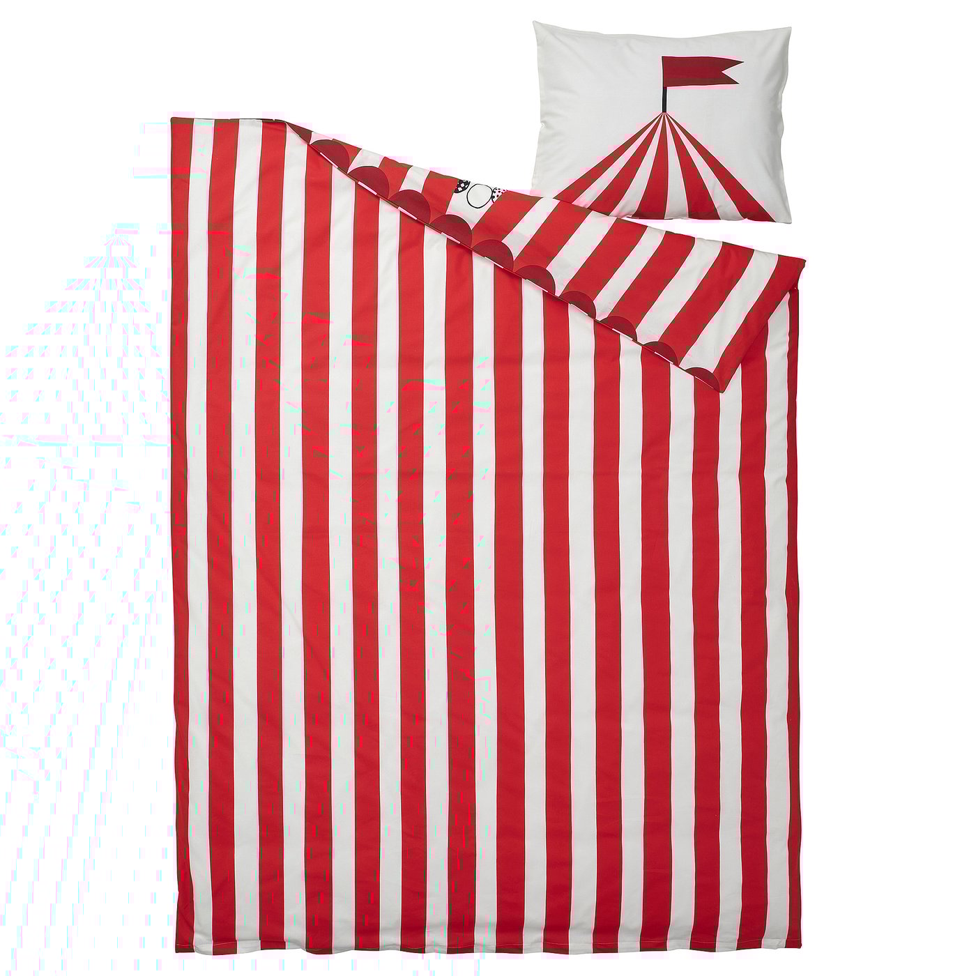 Let whimsical and strong circus artists take their places in bed. This duvet cover and pillowcase are woven from a mix of cotton and lyocell – soft natural materials that make your child long for bed.
