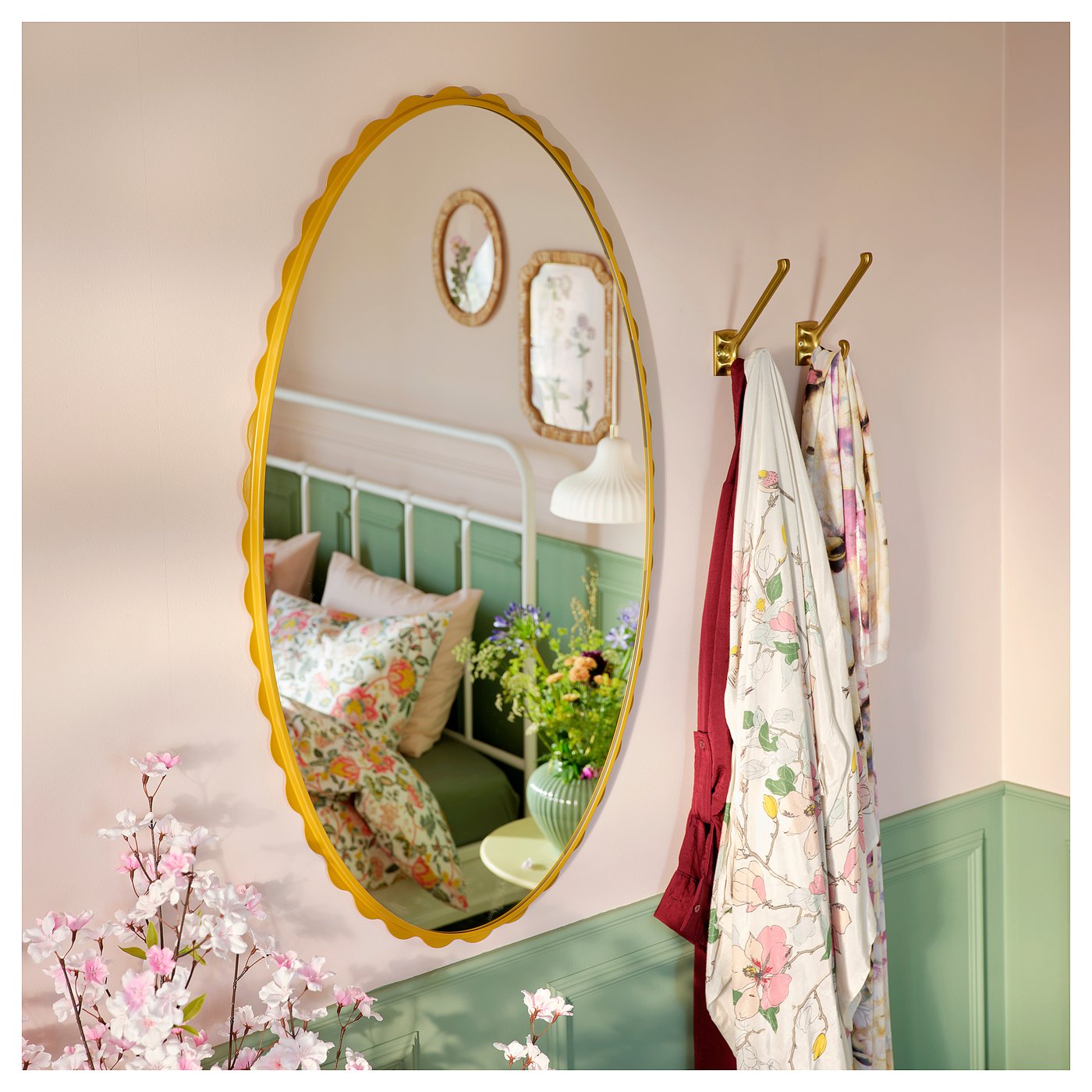 This charming mirror with a flounced edge makes every glance memorable – and pairs perfectly with DAGGKAPRIFOL display shelf. Choose a mirror with a yellow frame to give yourself a lively touch!