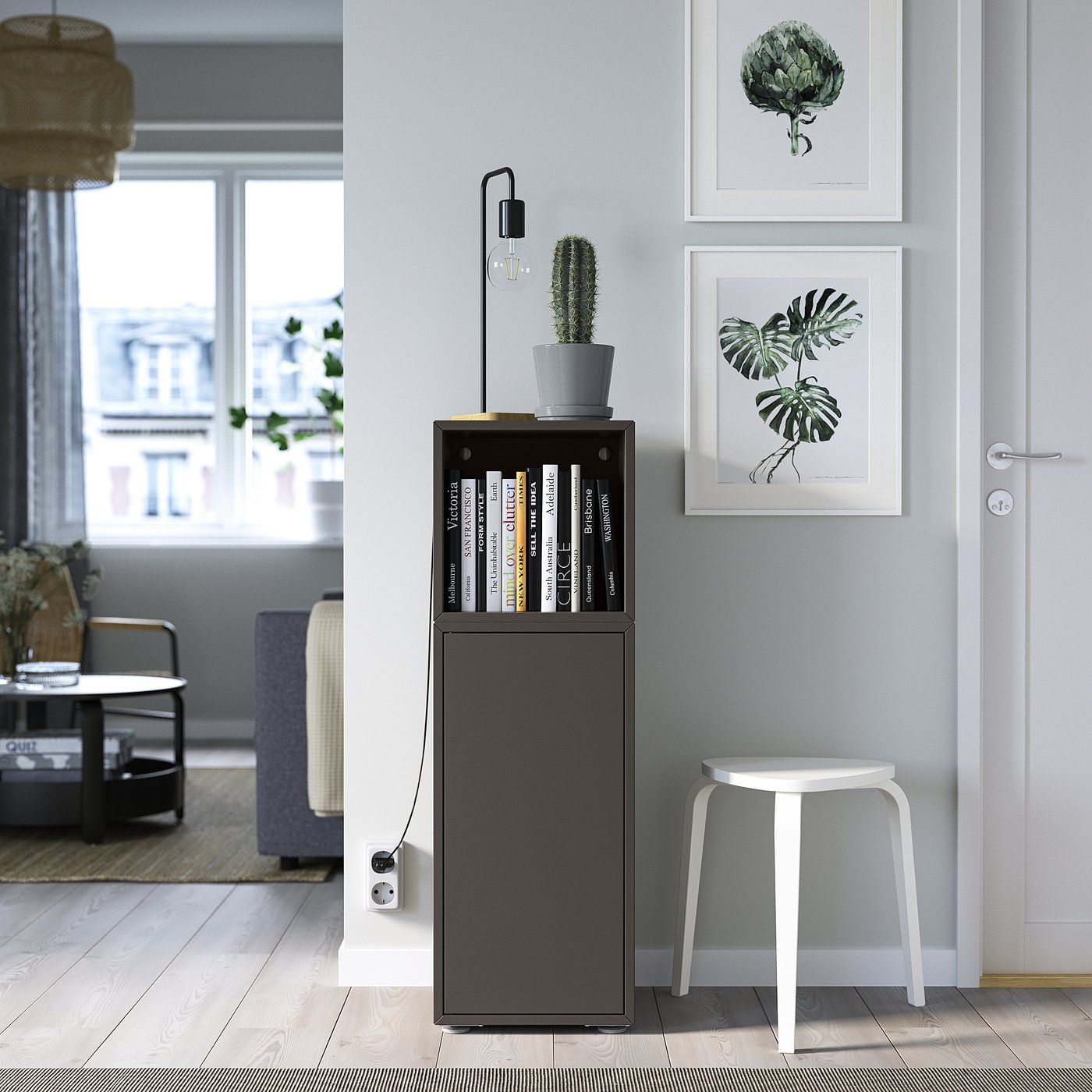 Hide or display your things by combining open and closed storage.
