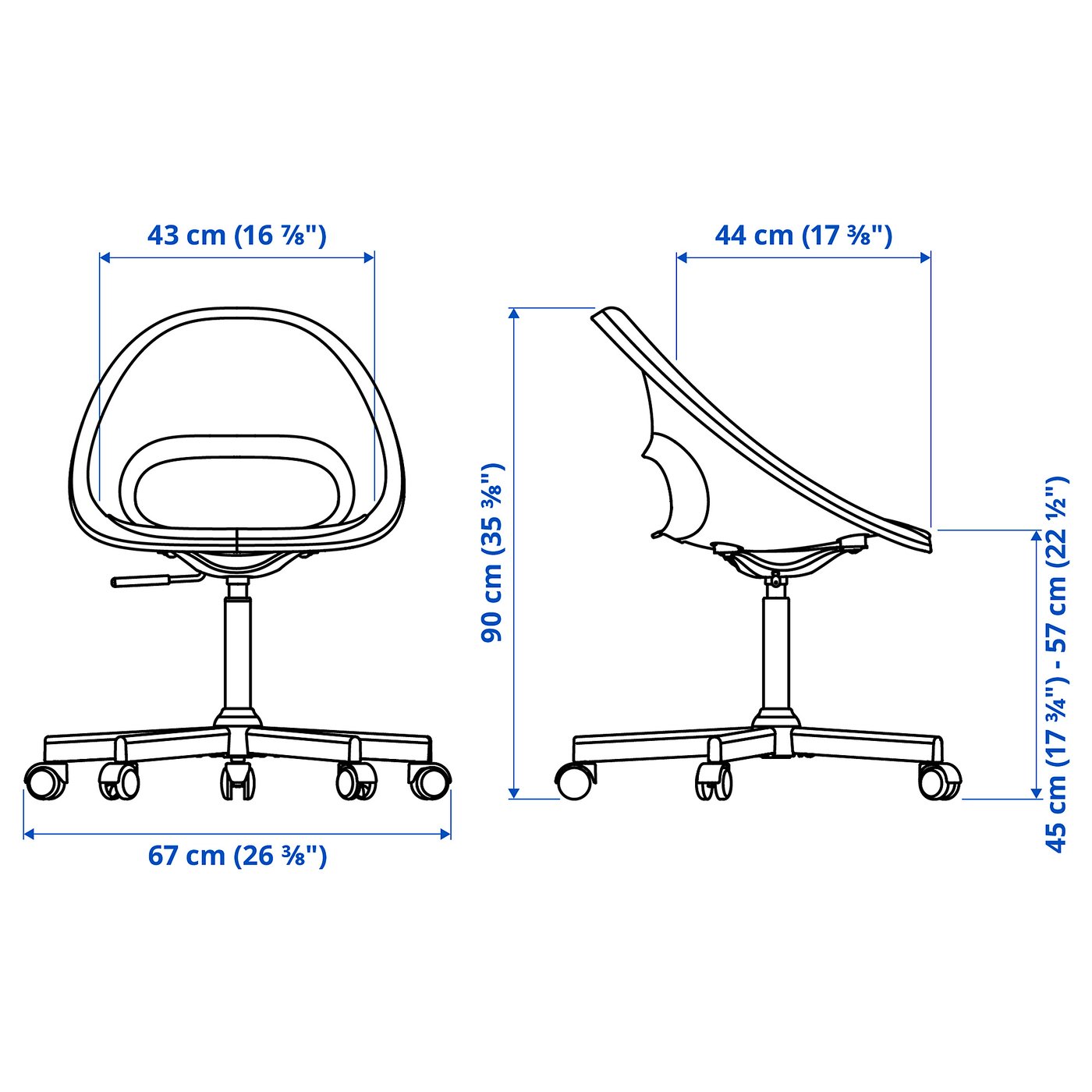 The beautiful and light shape of this desk chair makes it easy to furnish any workspace at home for schoolwork, hobbies or just paying the bills.