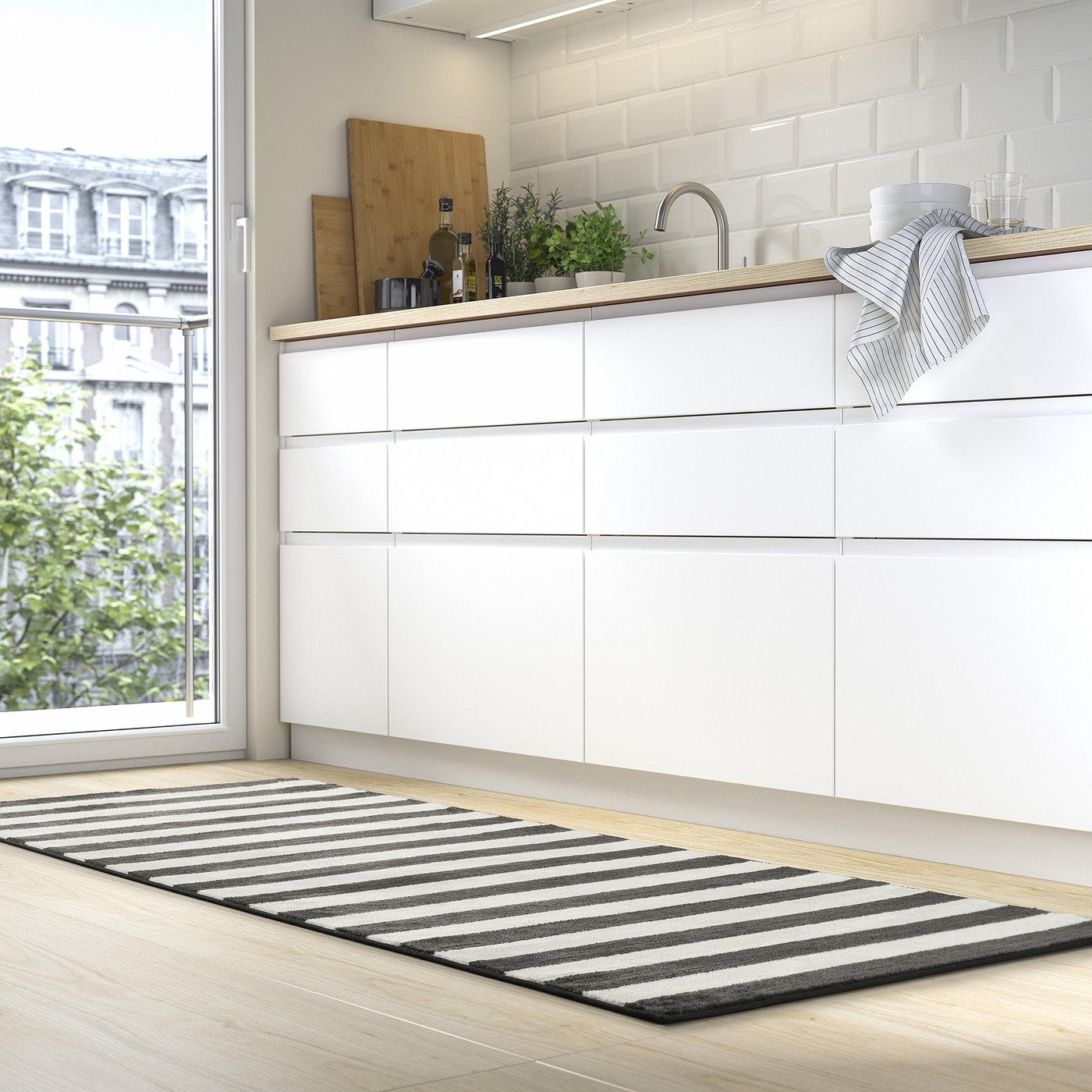 This rug with timeless black and white stripes goes well in the kitchen, hallway, bedroom or wherever you want to add some softness and expression. An easy way to revitalize almost any space in your home.