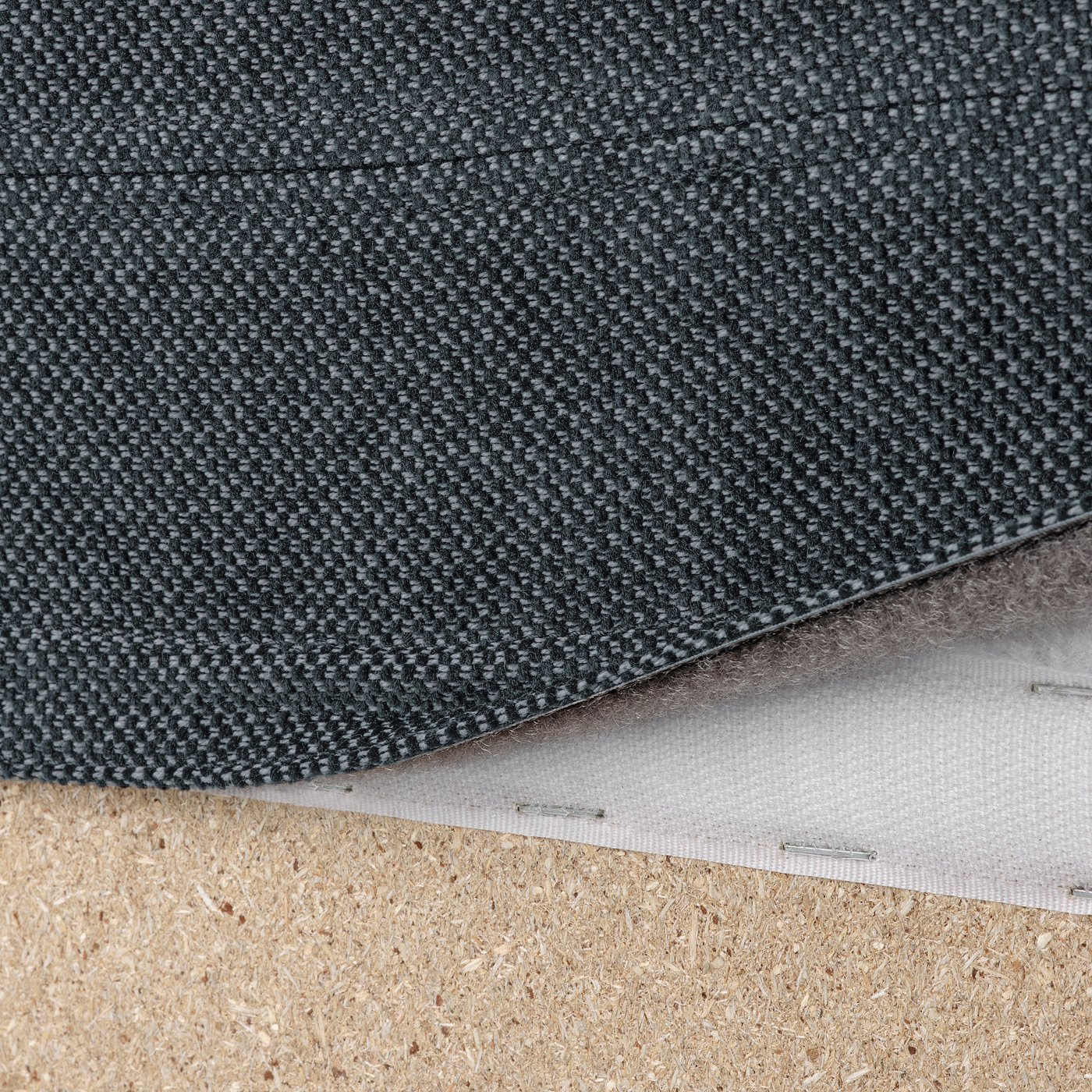 Polyester wadding, Plywood, Polyurethane foam 2.0 lb/cu.ft., Particleboard, Solid wood, Fiberboard, Polypropylene
