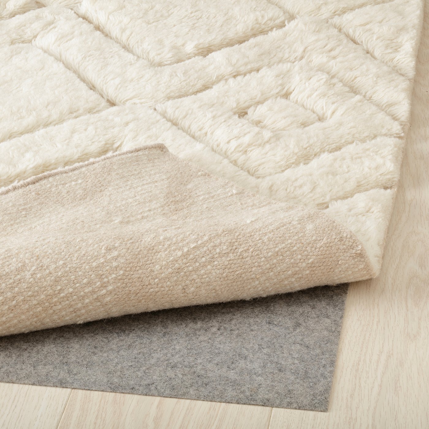 This handmade wool rug will grace your floor with its geometric pattern made with a mix of low and high piles that creates a unique structure. Goes just as well by the sofa as under the dining table.