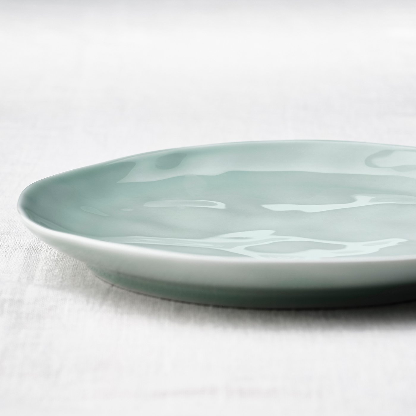 Harmonious balance between minimalism and a tactile handmade feel. The turquoise-grey FORELLTETRA porcelain tableware has a simple, elegant look with a playfully irregular finish, creating a relaxed vibe.