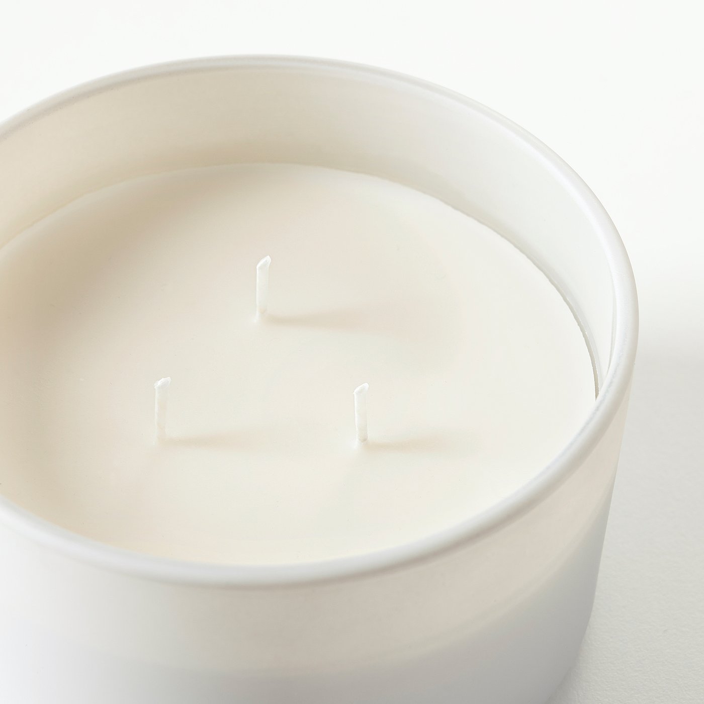 Scented candle in glass, 3 wicks, Fresh linen/white frosted glass
