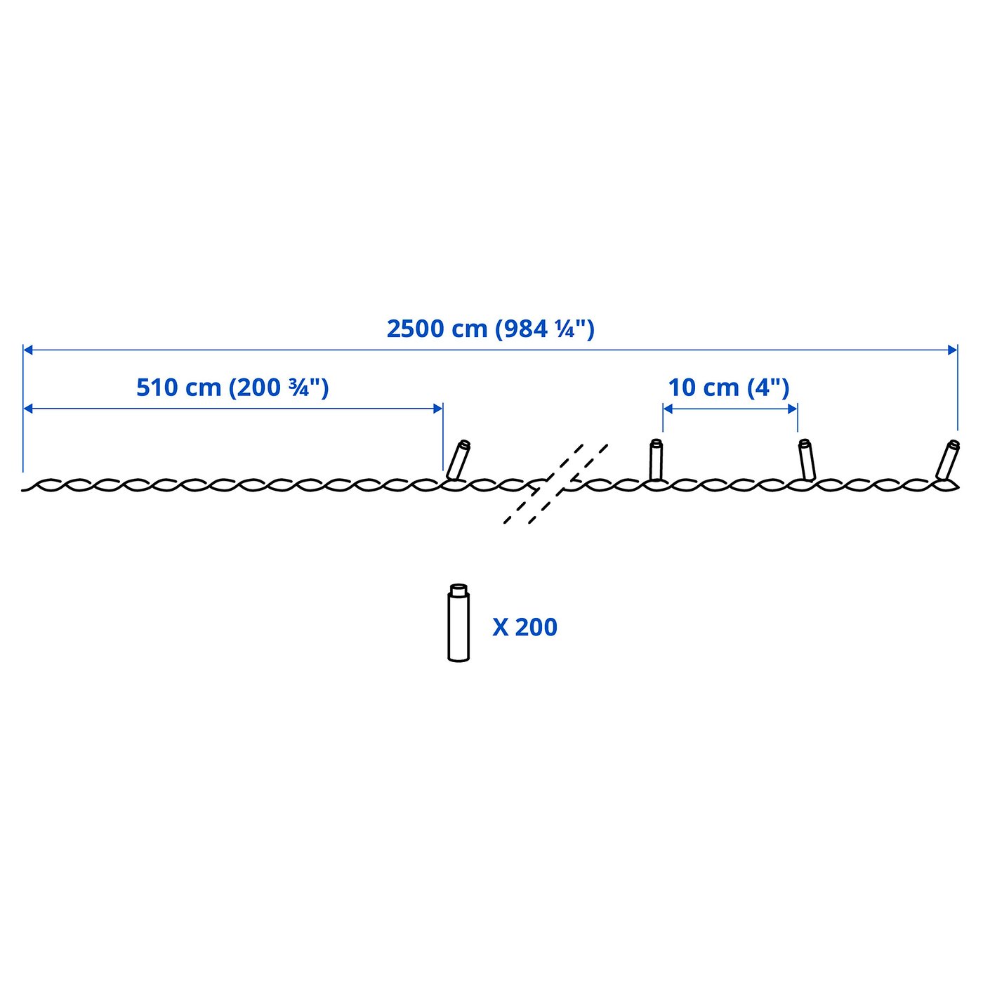 GETKÅL string lights create the right mood and light for everyday moments or parties. This long outdoor string with a dusk-to-dawn sensor and different light modes spreads a warm, white light.