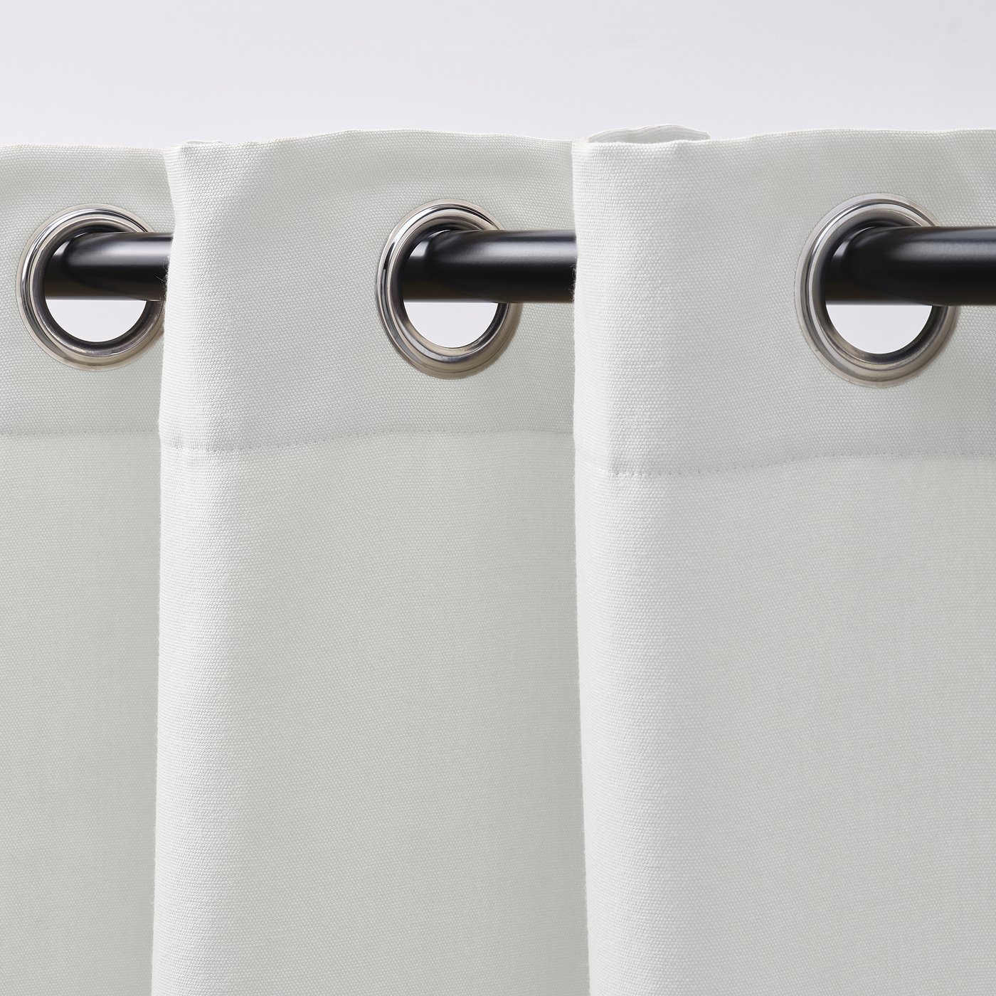 GINSTMOTT curtains in white add a fresh feel to any interior, letting in light and providing a sense of privacy. Lightweight and fade-resistant recycled polyester with eyelets that give rounded folds.