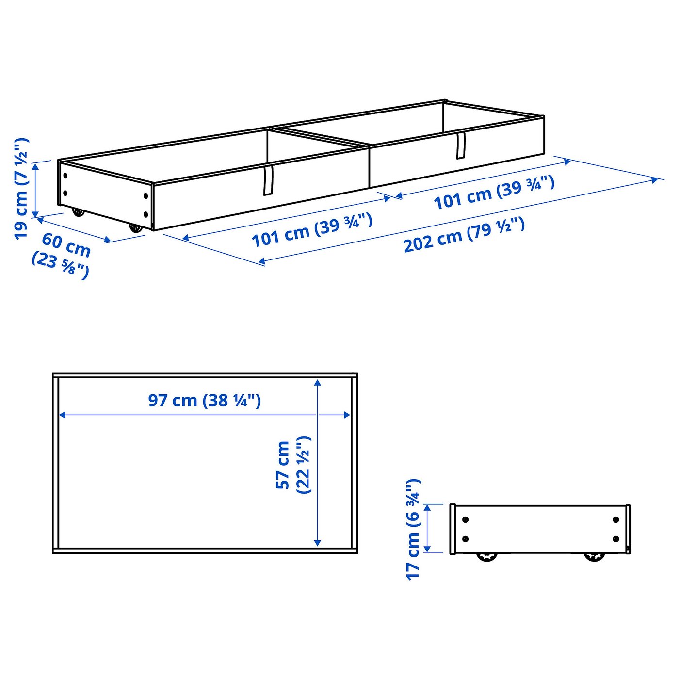 Store your bedding under the bed instead of collecting dust. These storage boxes fit perfectly with GLADSTAD upholstered bed frame in KABUSA light grey – easy to roll out and in for easy access.