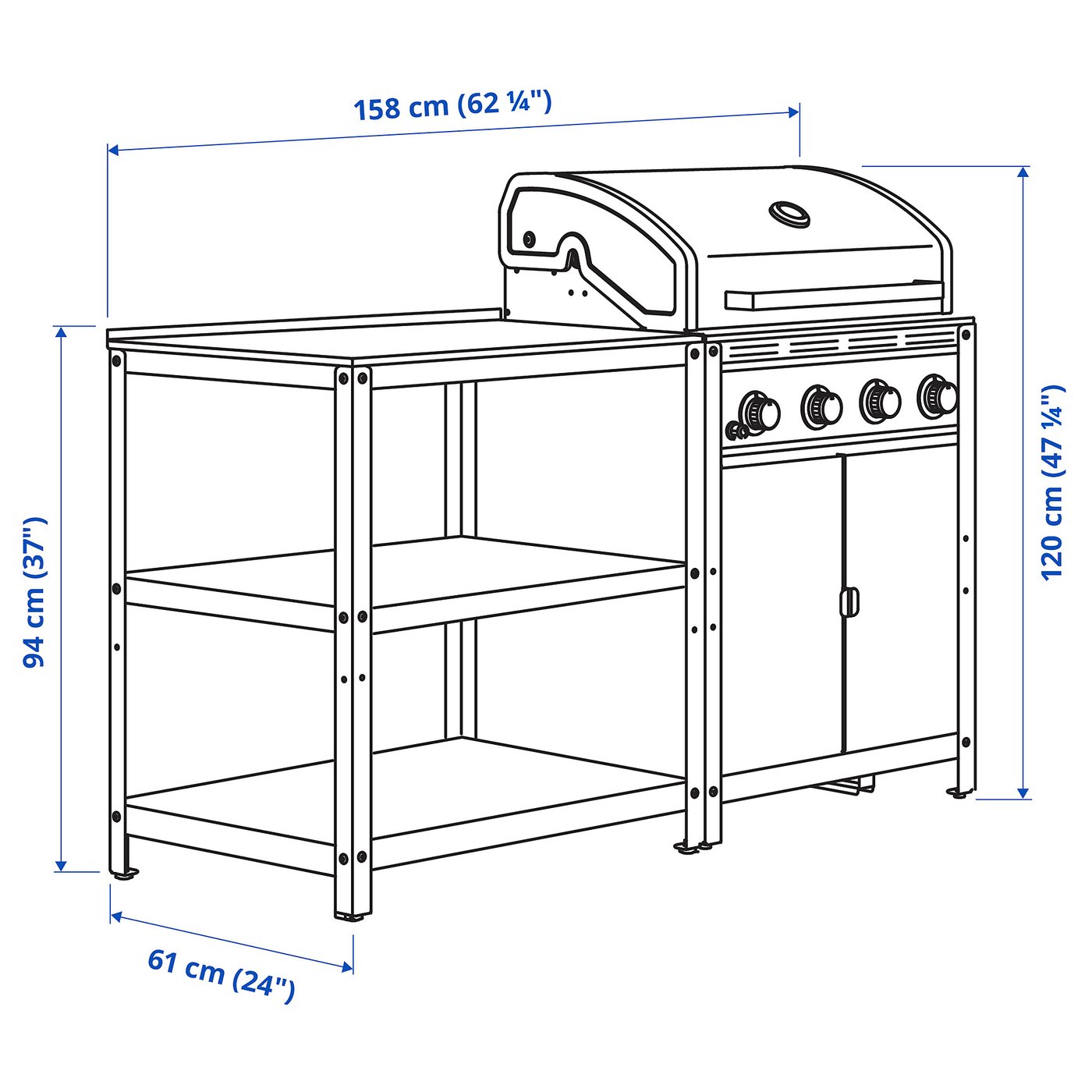 GRILLSKÄR gas grill has four independently controlled burners with low to high temperature settings, providing you with lots of cooking options.