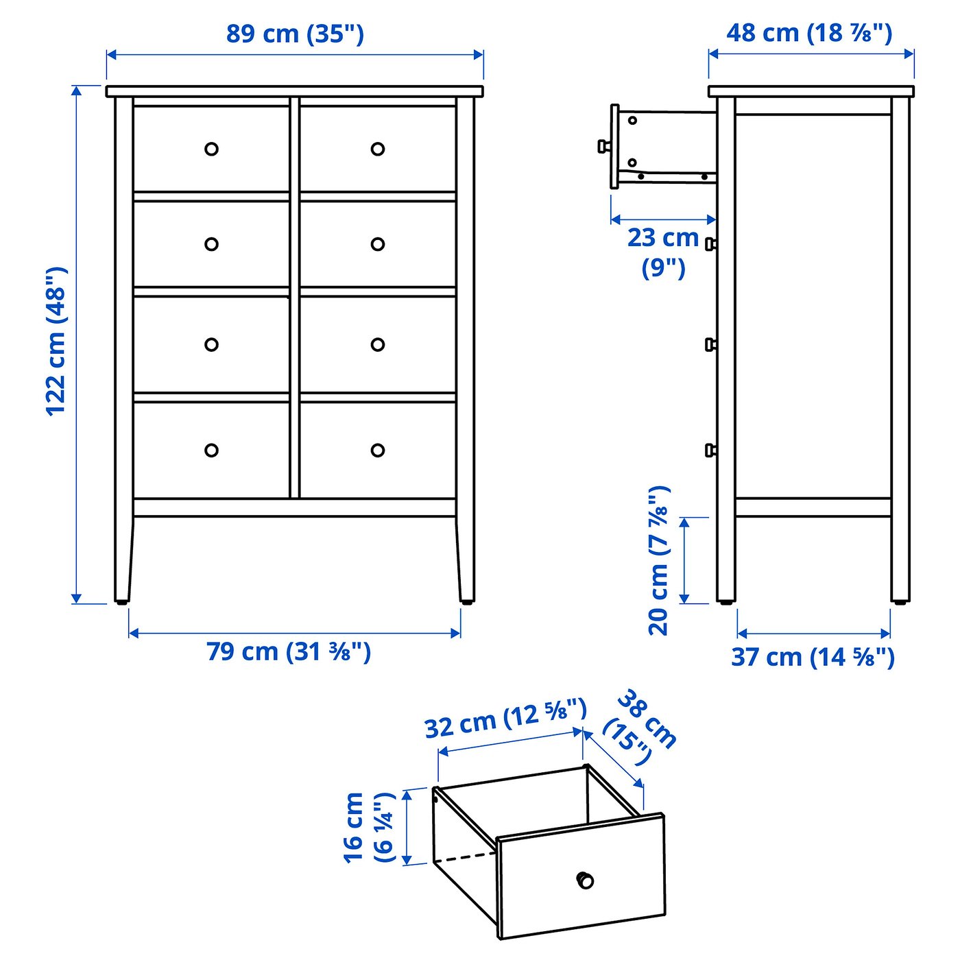 This tall chest of drawers has 8 smooth-running drawers that make it easy to organize your things.