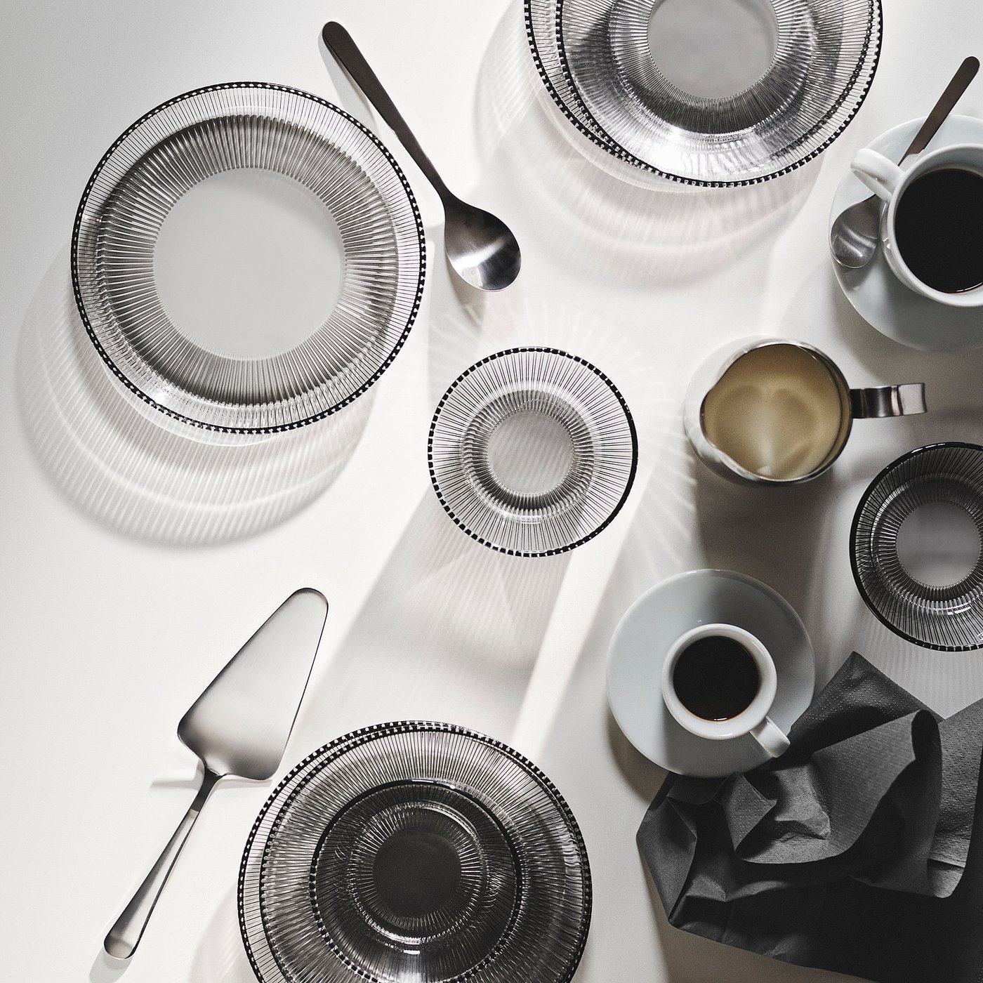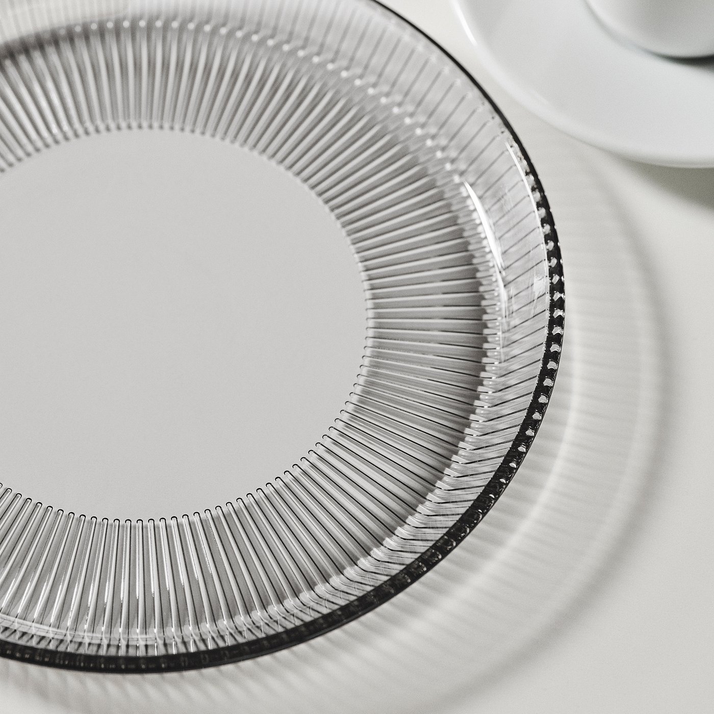 Use HAVSGÄDDA dinnerware as a welcoming eye-catcher! Beautiful lines create reflections in the glass, making it great to combine with other dinnerware – and the gray color adds a sophisticated touch.