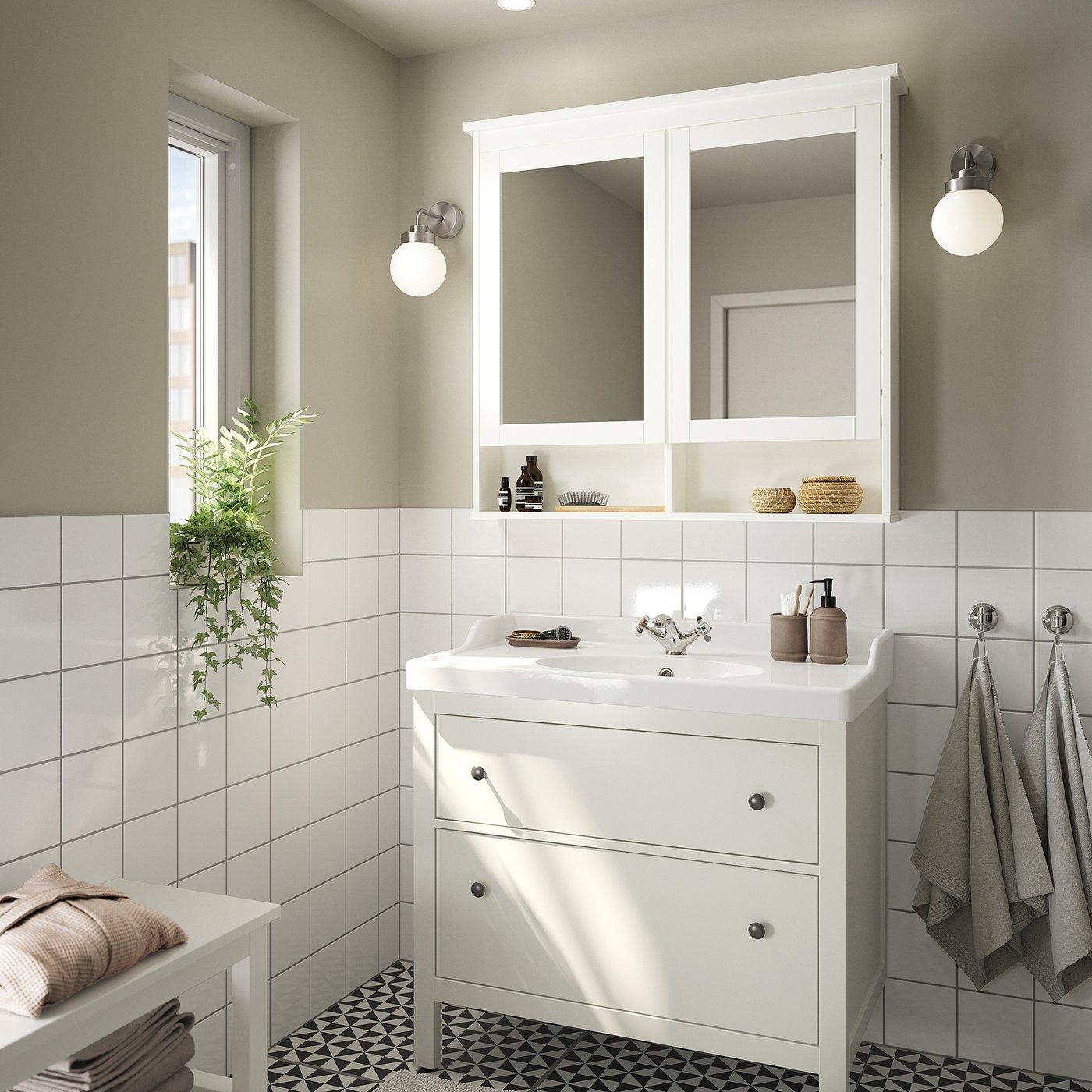 Our HEMNES series reinforces the traditional look in your bathroom with a simple design that never feels outdated. The smooth-running drawers open all the way so you can easily find all your things.