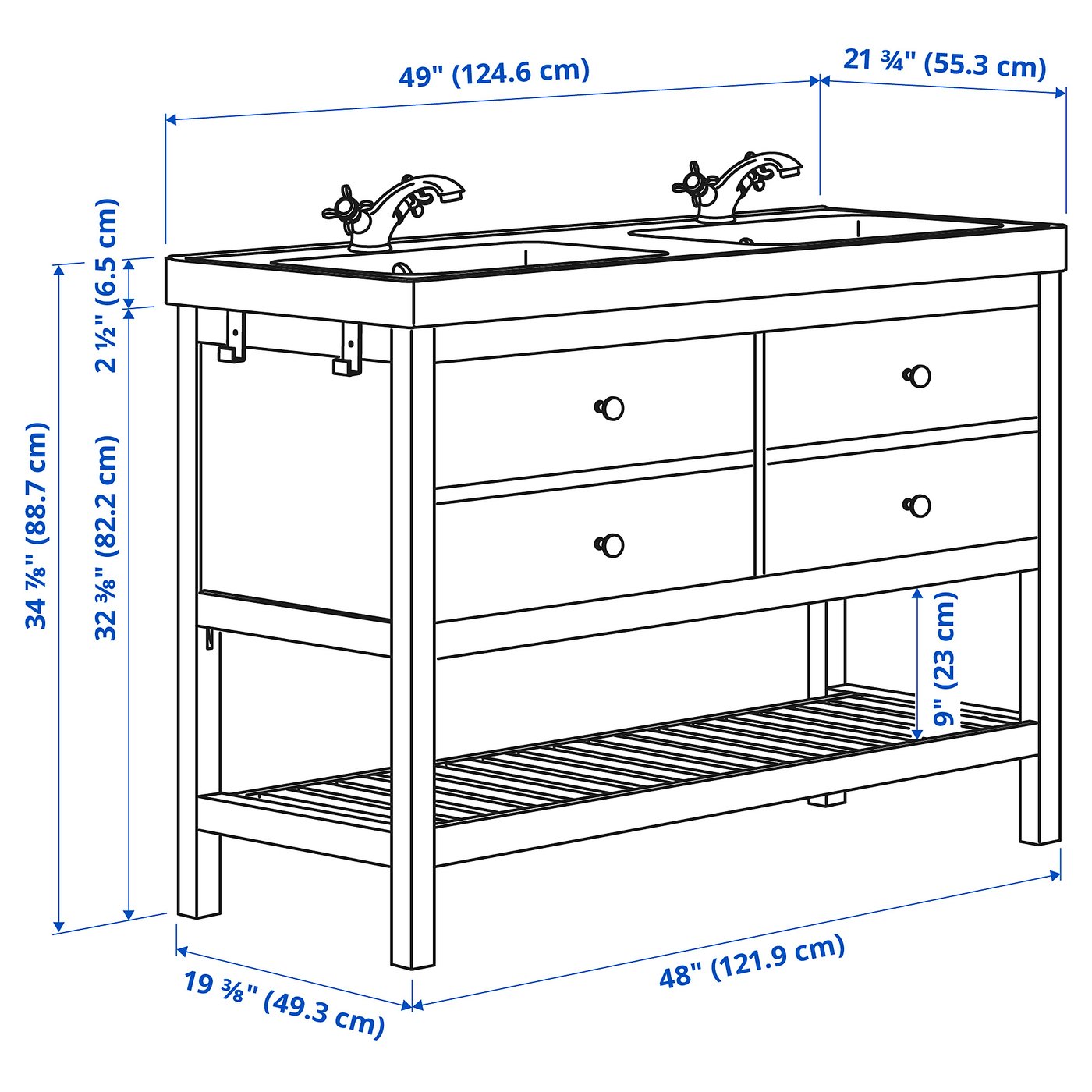 HEMNES / ORRSJÖN, Double vanity with sink & faucet