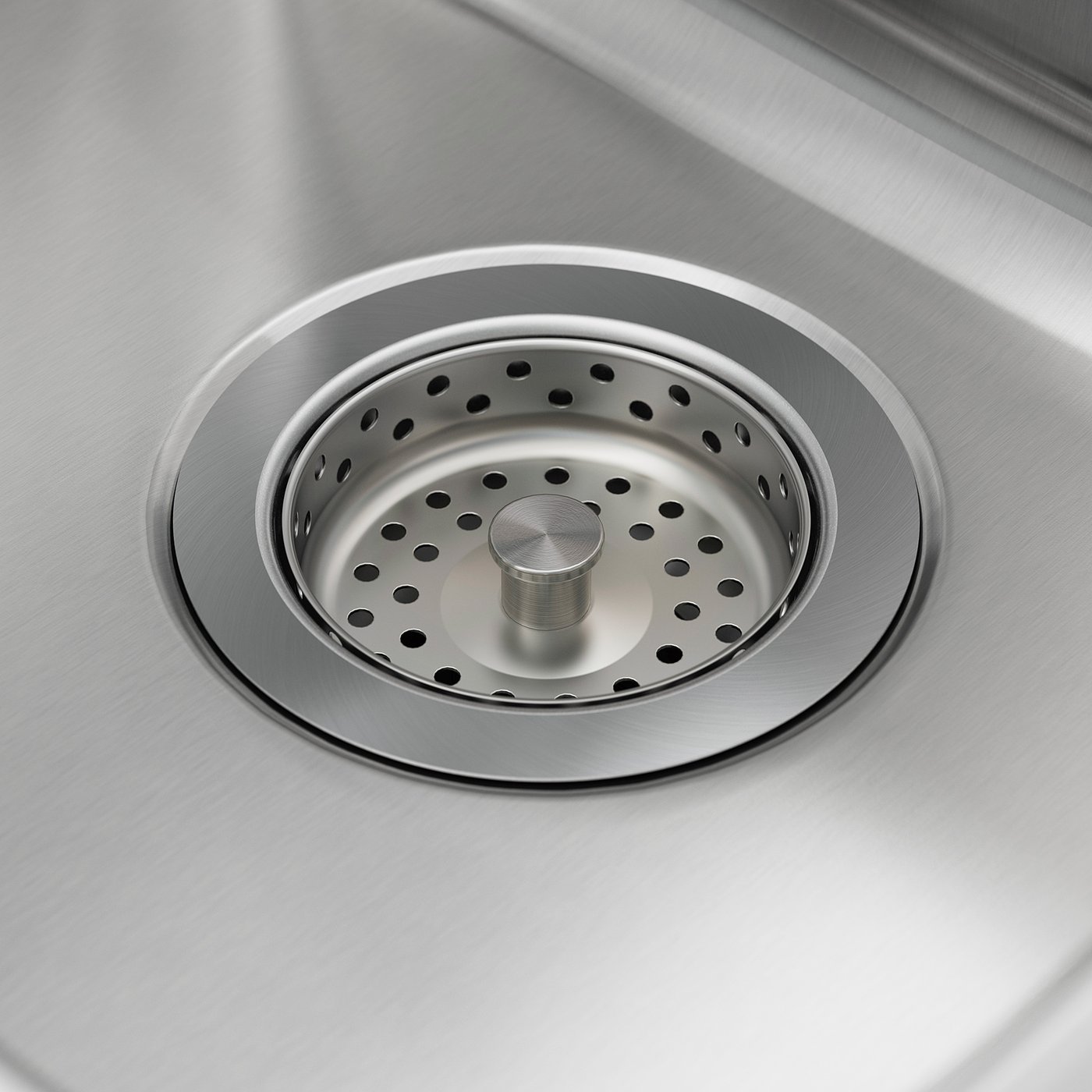 Wipe dry with a clean cloth. Always wipe and rub the sink along the steel grain when cleaning. Wipe clean with a water dampened soft cloth and a mild non-abrasive dish detergent or soap, if necessary. Do not use scouring-powder, steel wool, hard or sharp tools which can scratch the stainless steel surface.