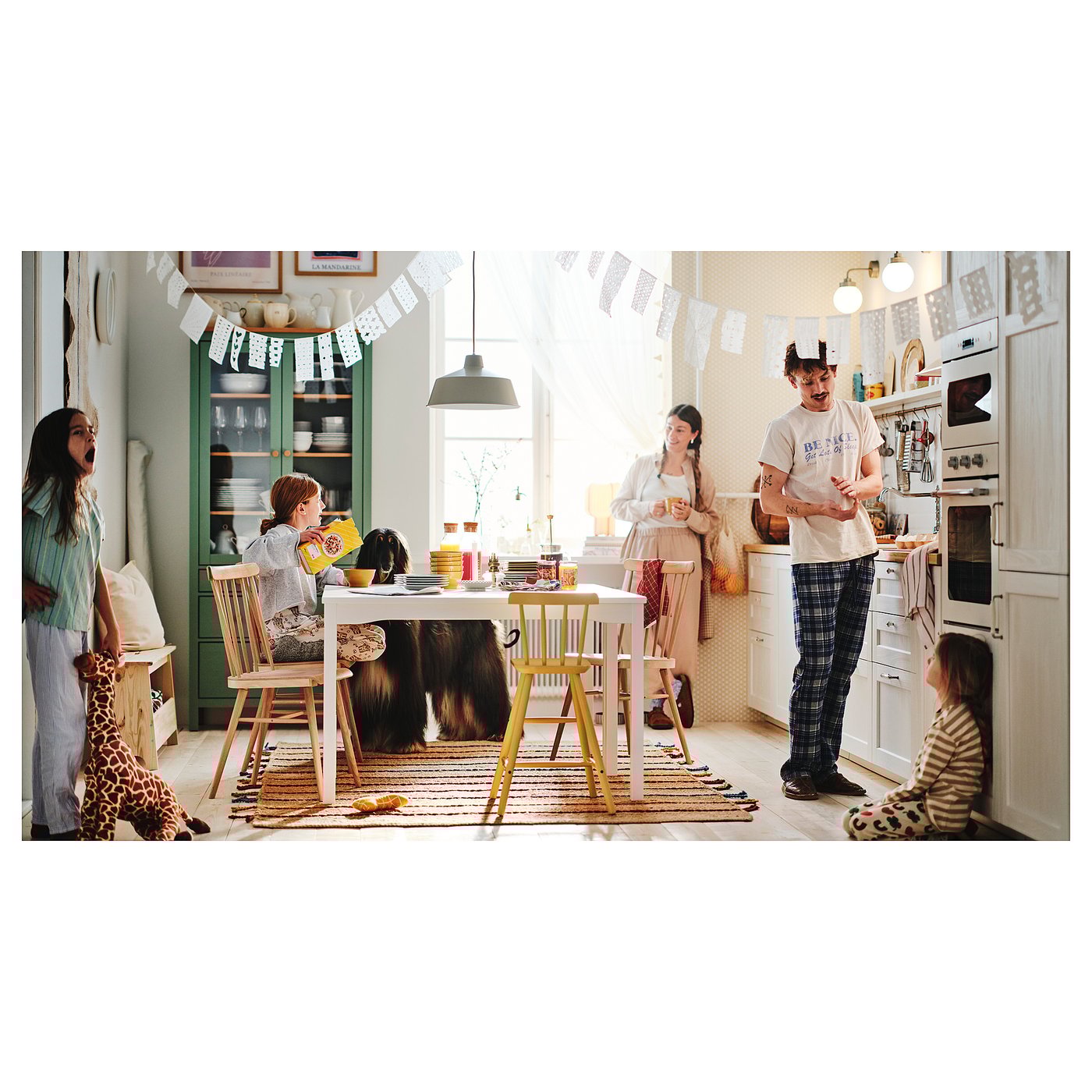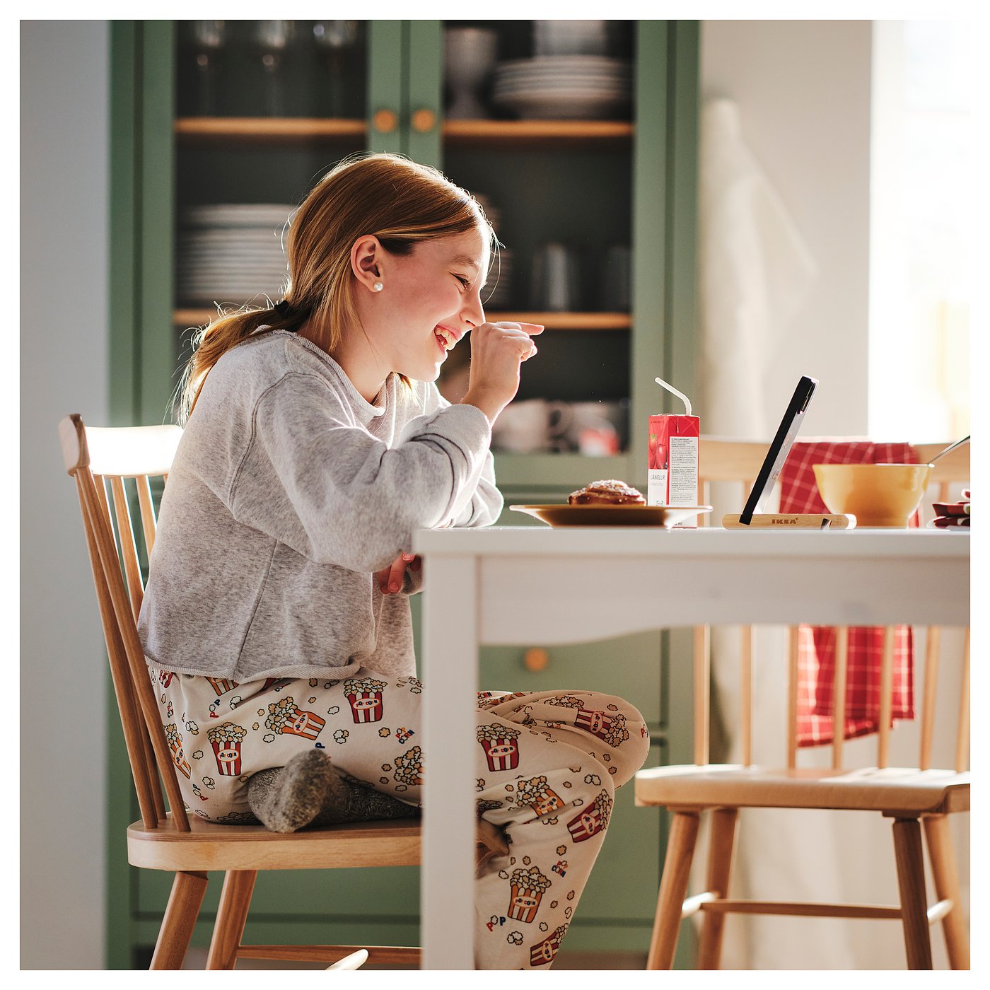 A fresh twist on IKEA design heritage, this spindle chair is crafted from solid birch with a lacquered wood veneer seat that highlights the grain. A charming blend of style and durability.