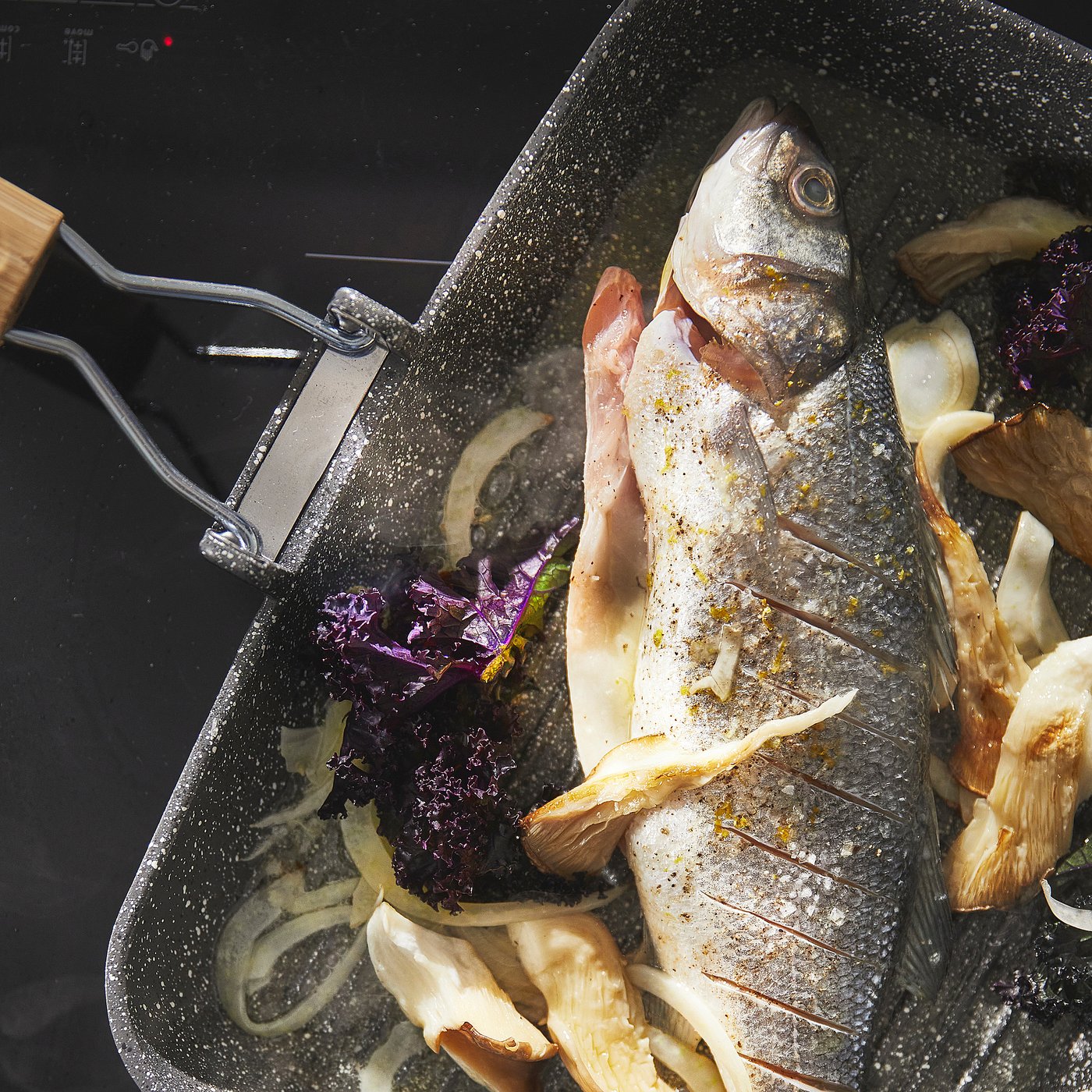 The hardwearing sol-gel ceramic non-stick coating reduces the risk of food burning or getting stuck.