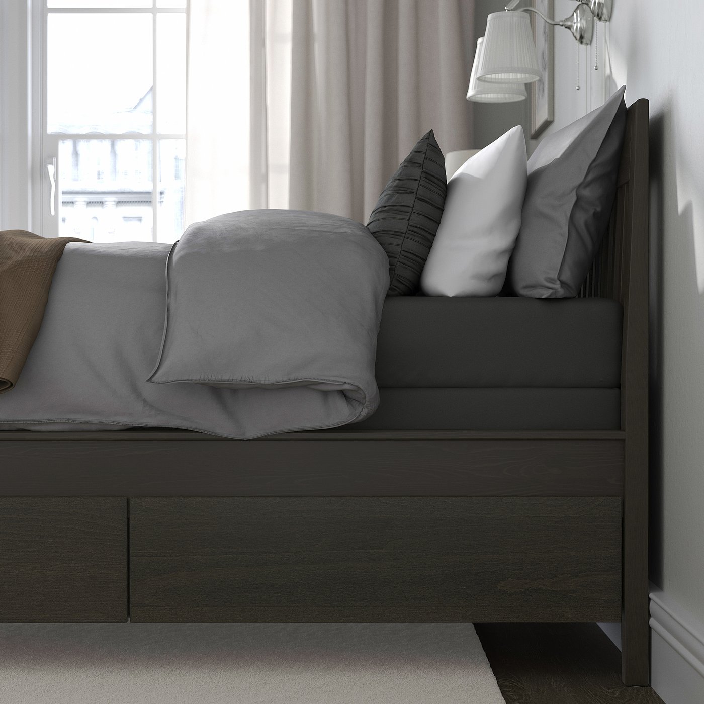 Bed frame with storage, dark brown/Lyngör dark gray