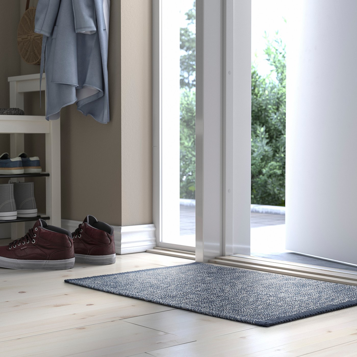 Add a fresh and welcoming feel to your home. This cotton door mat has a calming shade of dark blue with hints of white. Pair it with IDROTTSPLATS rug for a perfectly coordinated hallway.
