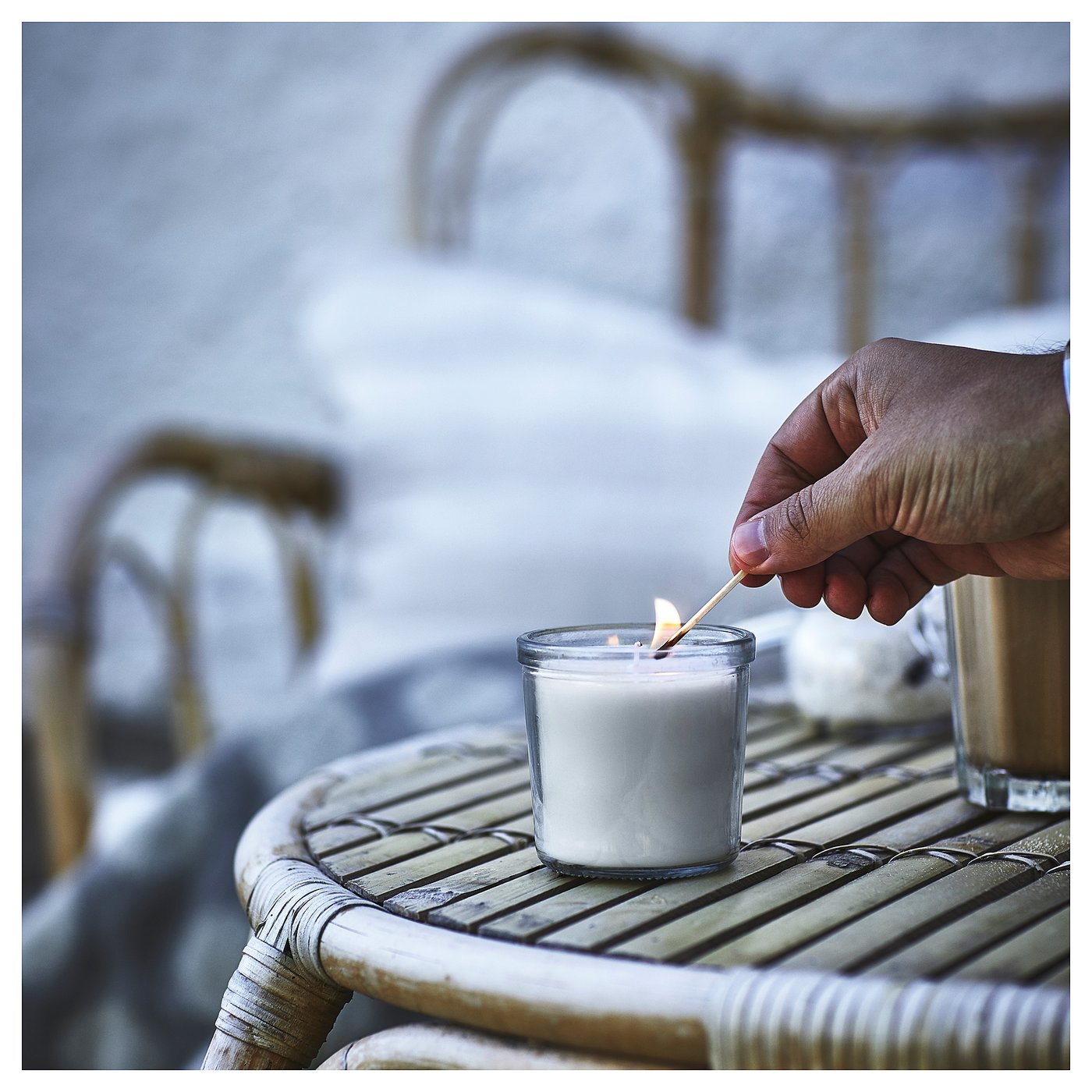 You can use this scented candle with BERGGRAN candle holder, 7 cm, which allows the light to shine through cut-out holes and create decorative patterns.