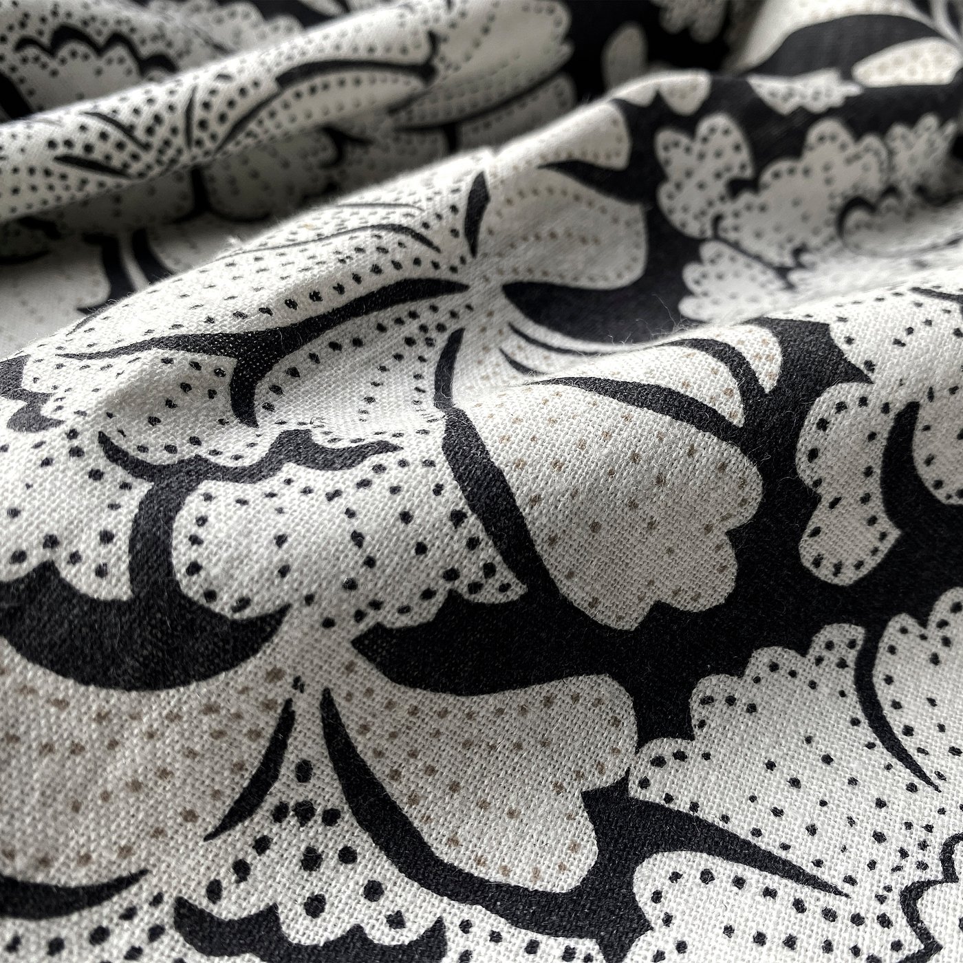 The printed floral pattern in white on a black background creates a beautiful visual impression.