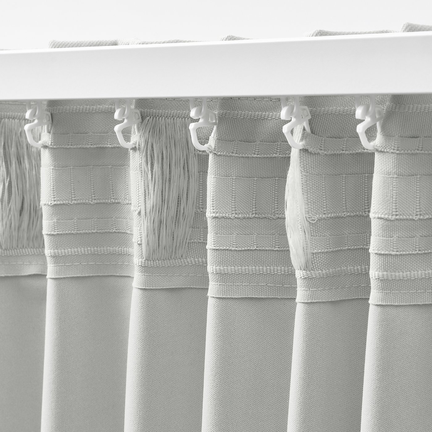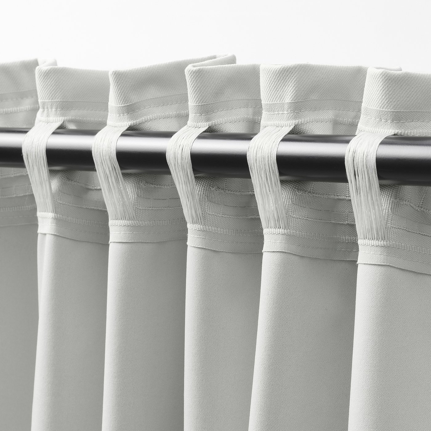 KORGMOTT block-out curtains in white add charm with woven fabric on both sides and elegant texture. The dense fabric gives defined pleats. Multi-way header for different hanging options.