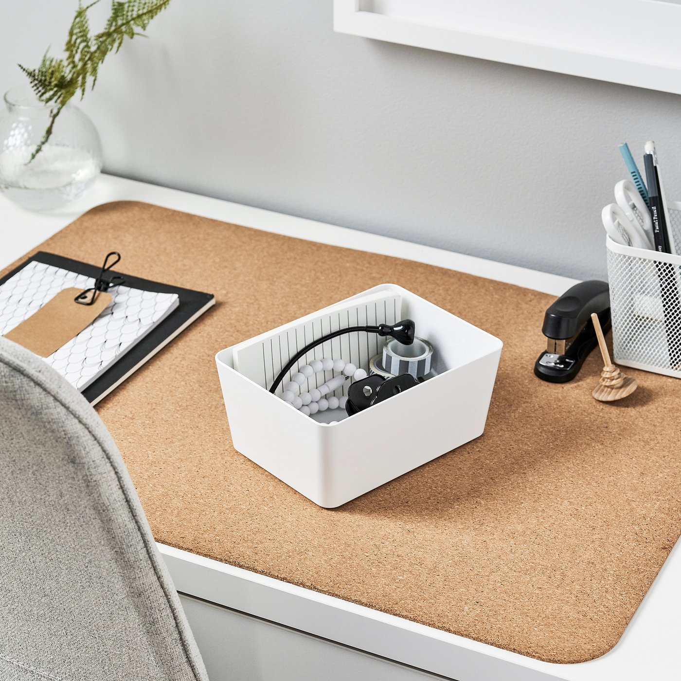 This box is practical for storing desk accessories or media gadgets. Complete with a lid, sold separately, if you want to protect the contents from dust or stack several boxes.