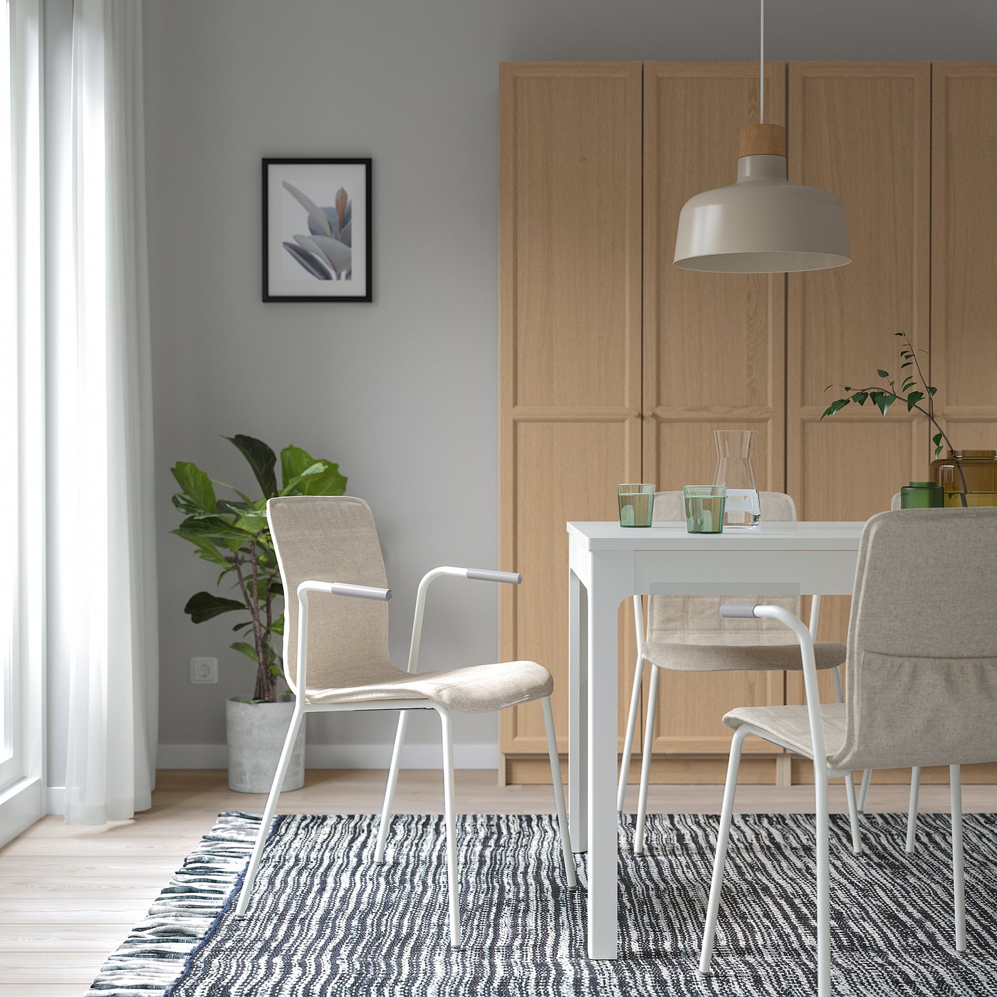 You can also use the chair without the cover. The natural expression of the light birch veneer blends easily with other furniture and colors.
