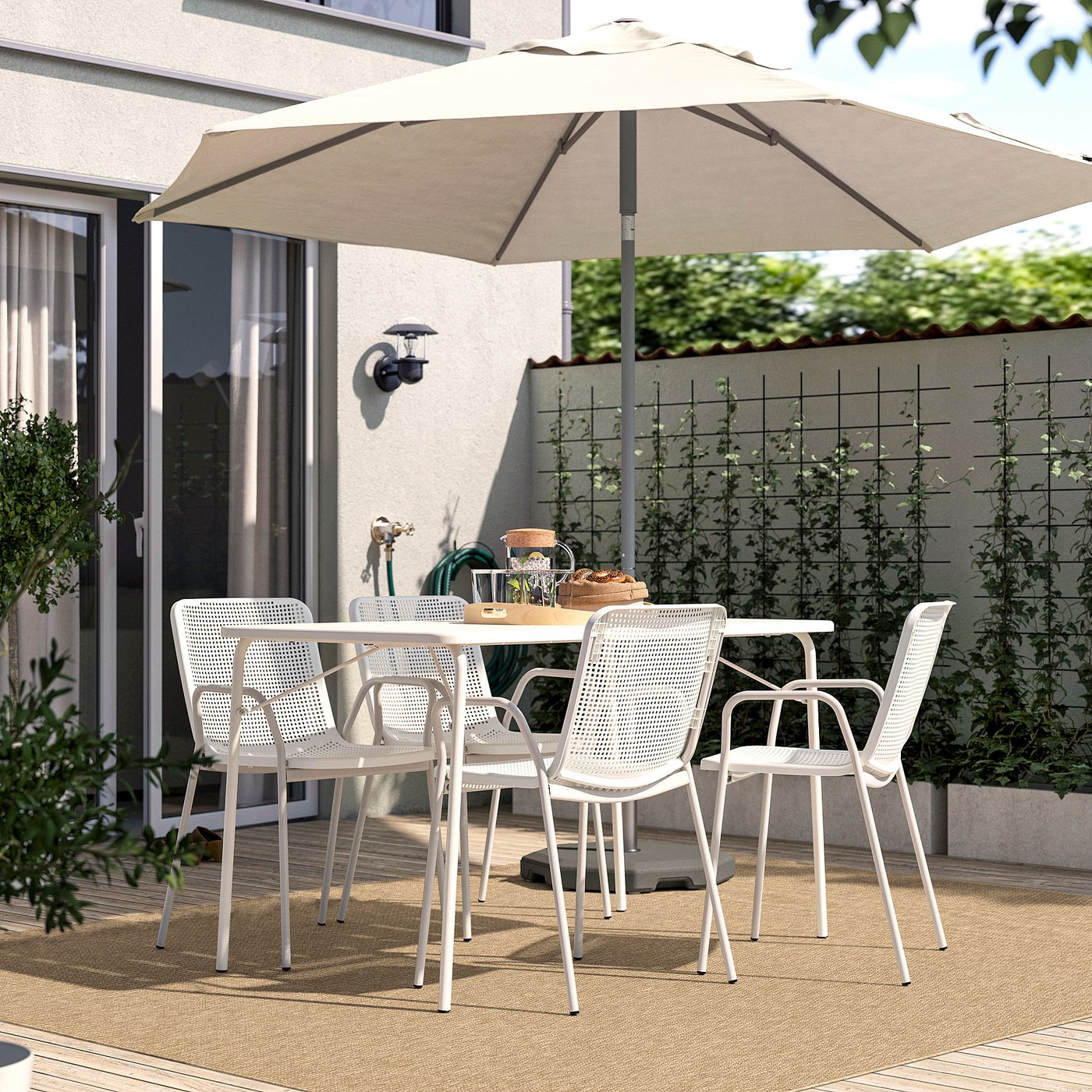 This flatwoven rug in soft beige and light-brown shades blends in naturally and adds a warm and cozy touch, both indoors and on your balcony or other outdoor space.