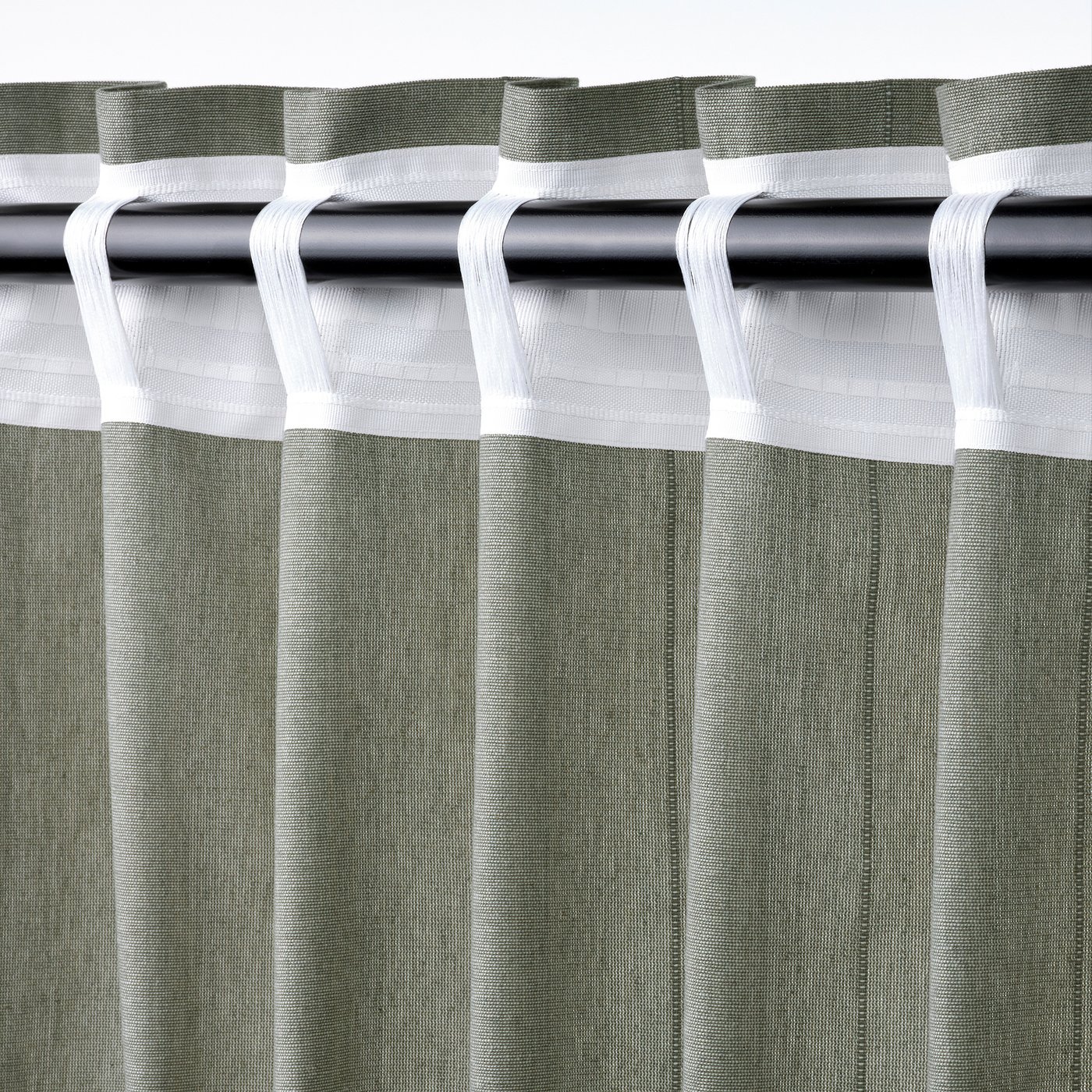 Curtains with tie-backs, 1 pair, light gray-green/with heading tape