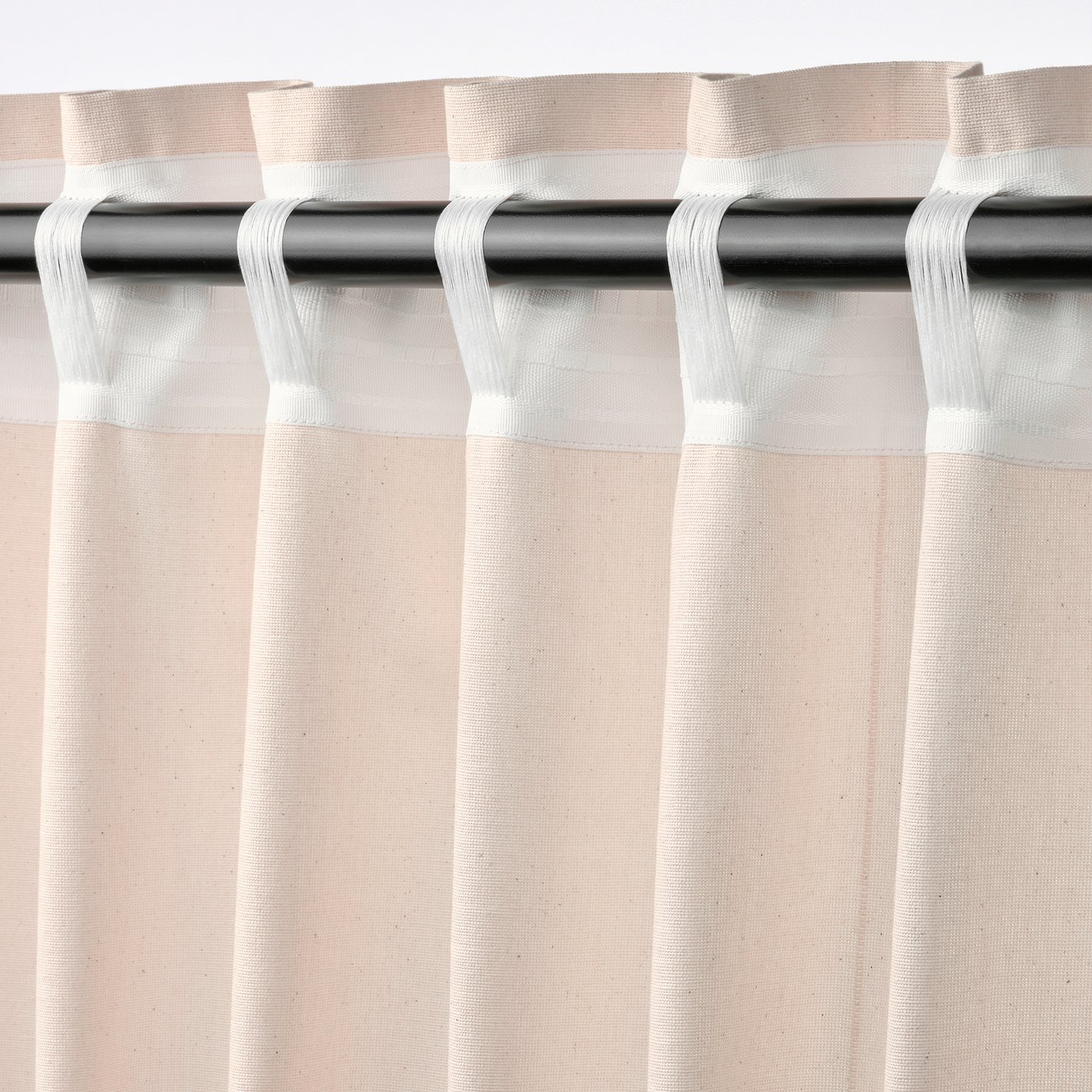 LENDA curtains in light pink cotton with header tape have a ribbed texture that adds character. Ideal for living rooms or bedrooms and also in layered solutions. The tiebacks add a decorative flair.