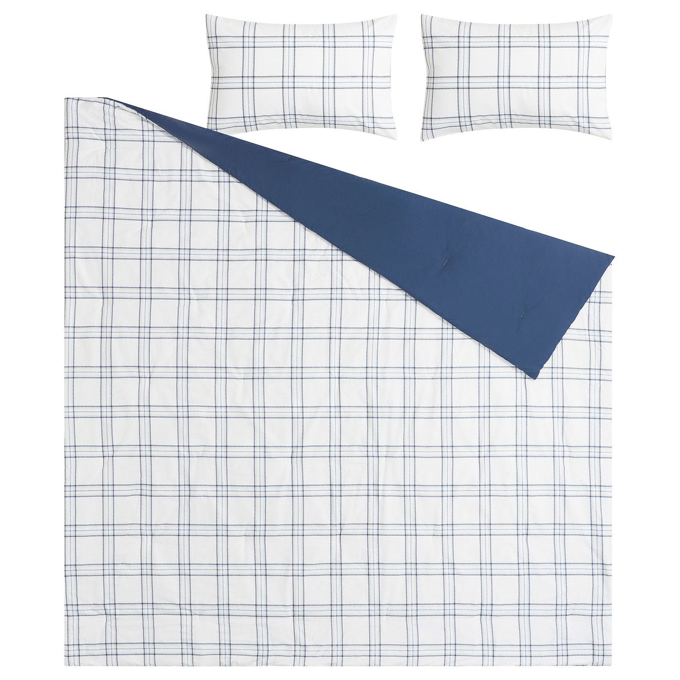 Classic blue checkered comforter with a matching solid-colored side where the mix of cotton/viscose offers a silky-smooth surface that feels like a soft embrace – at a surprisingly low price.